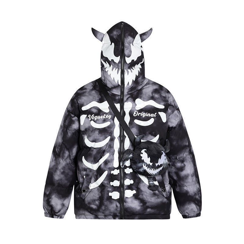 Bone Three-dimensional Angle Cotton-padded Jacket For Men And Women With Small Bag Punk Rock Winter Thick Coat