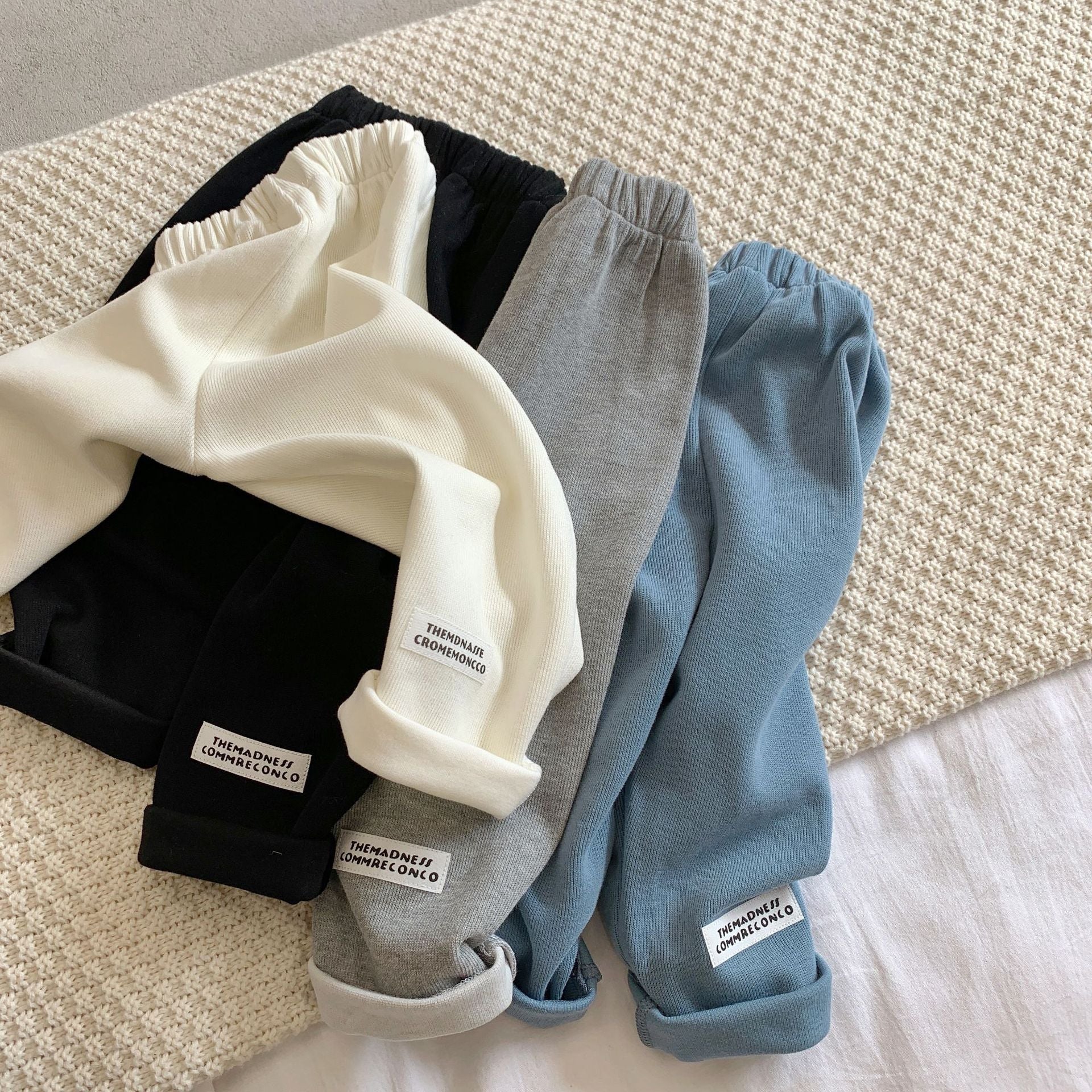Boys And Girls Solid Color Casual Trousers Baby Trademark Straight Leg Pants Trend