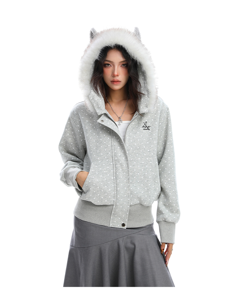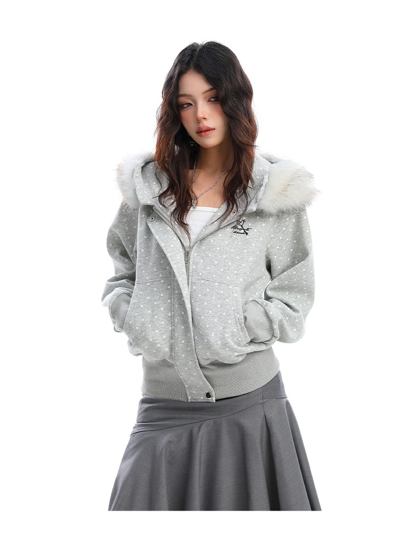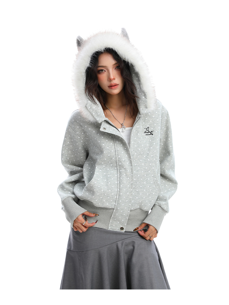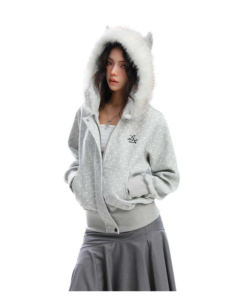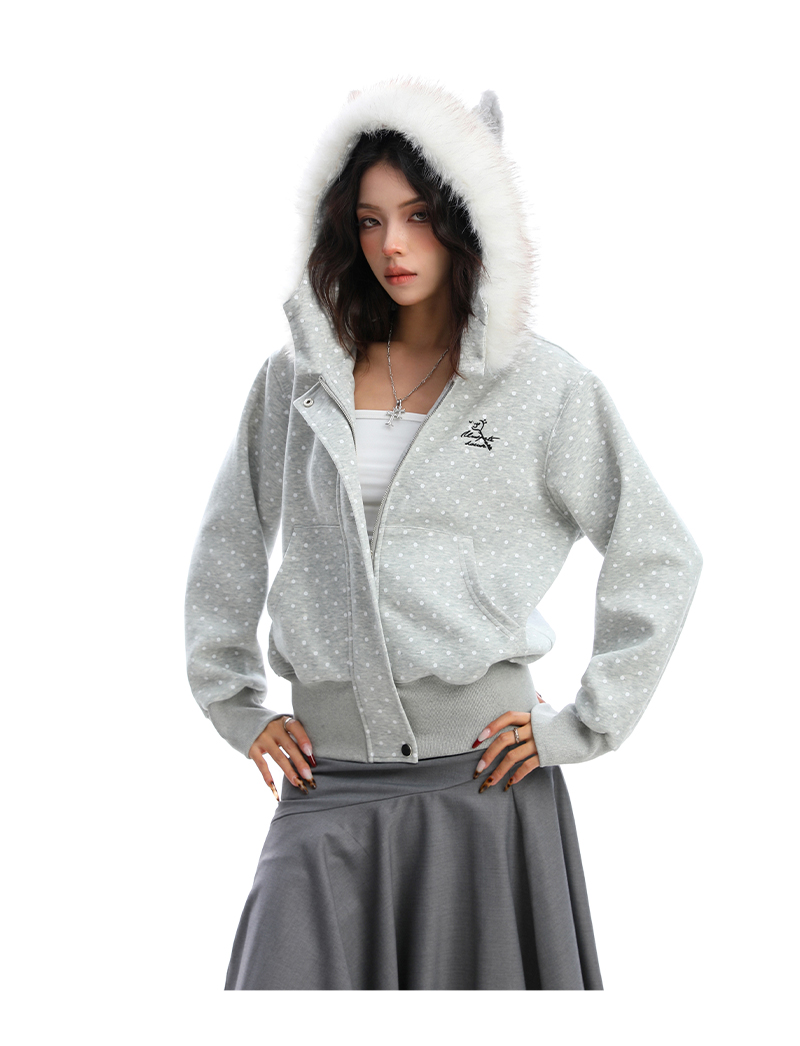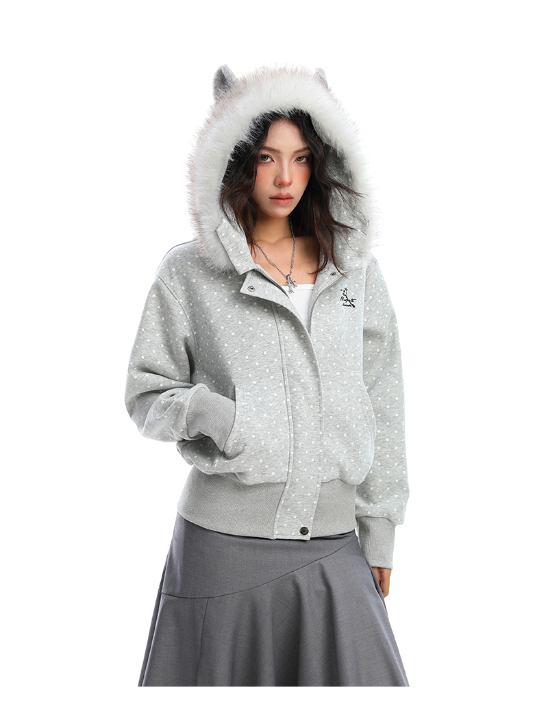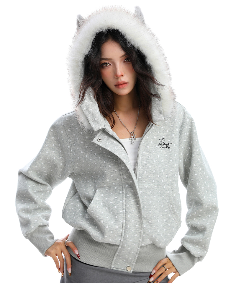 Camouflage Detachable Plush Collar Hooded Sweater Women's Cardigan Short Coat