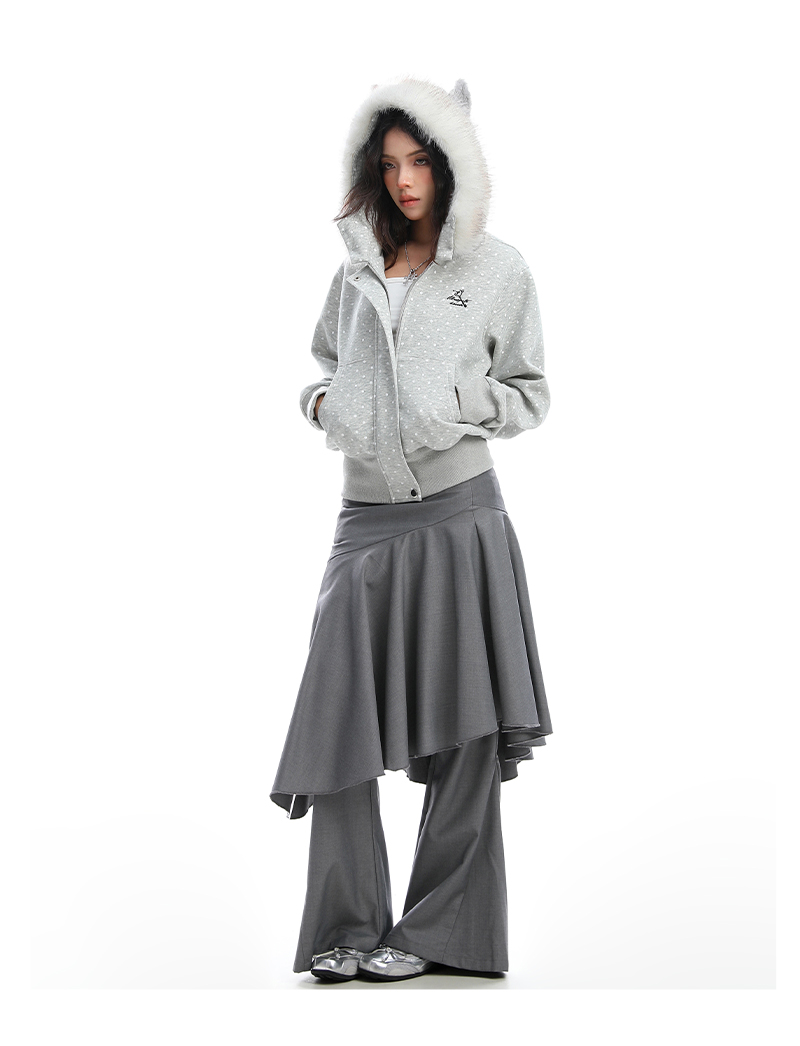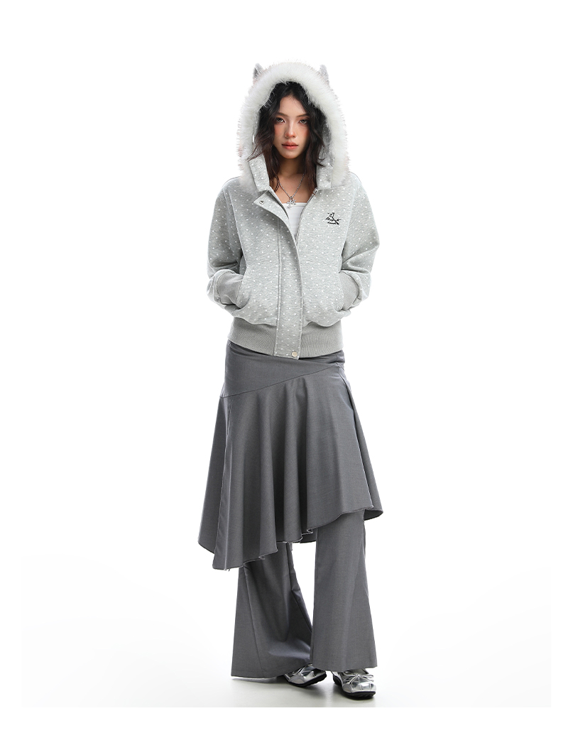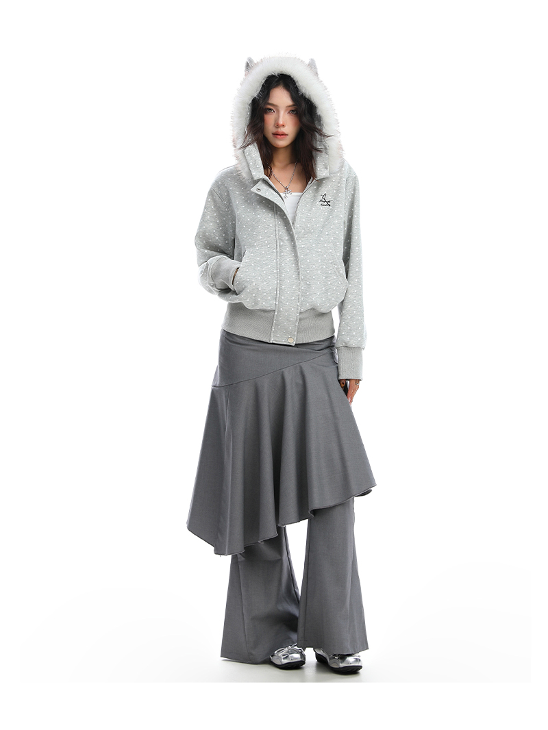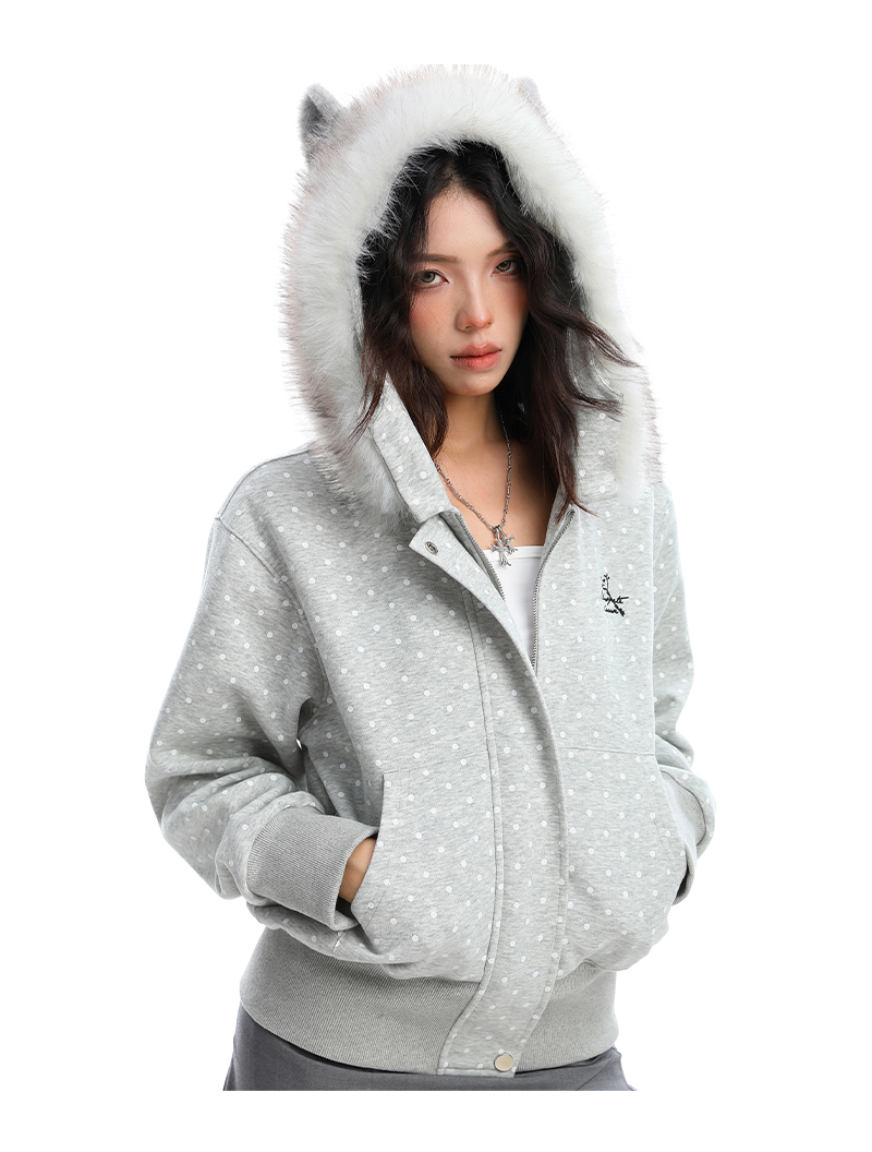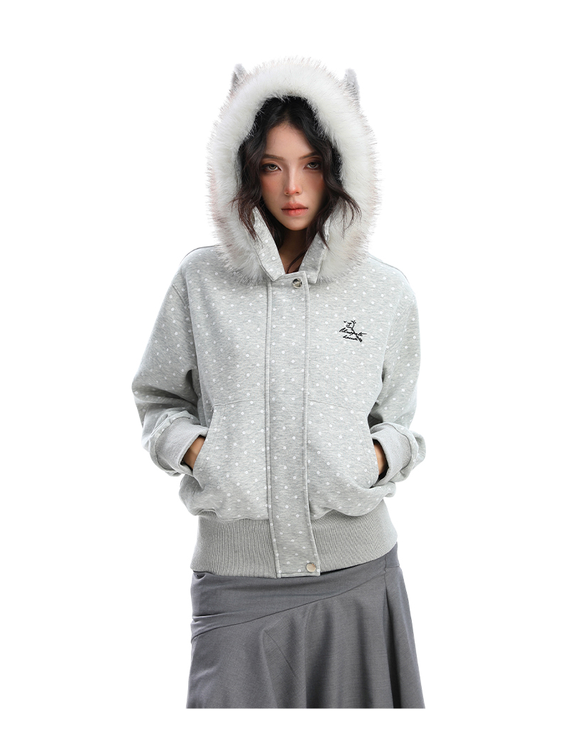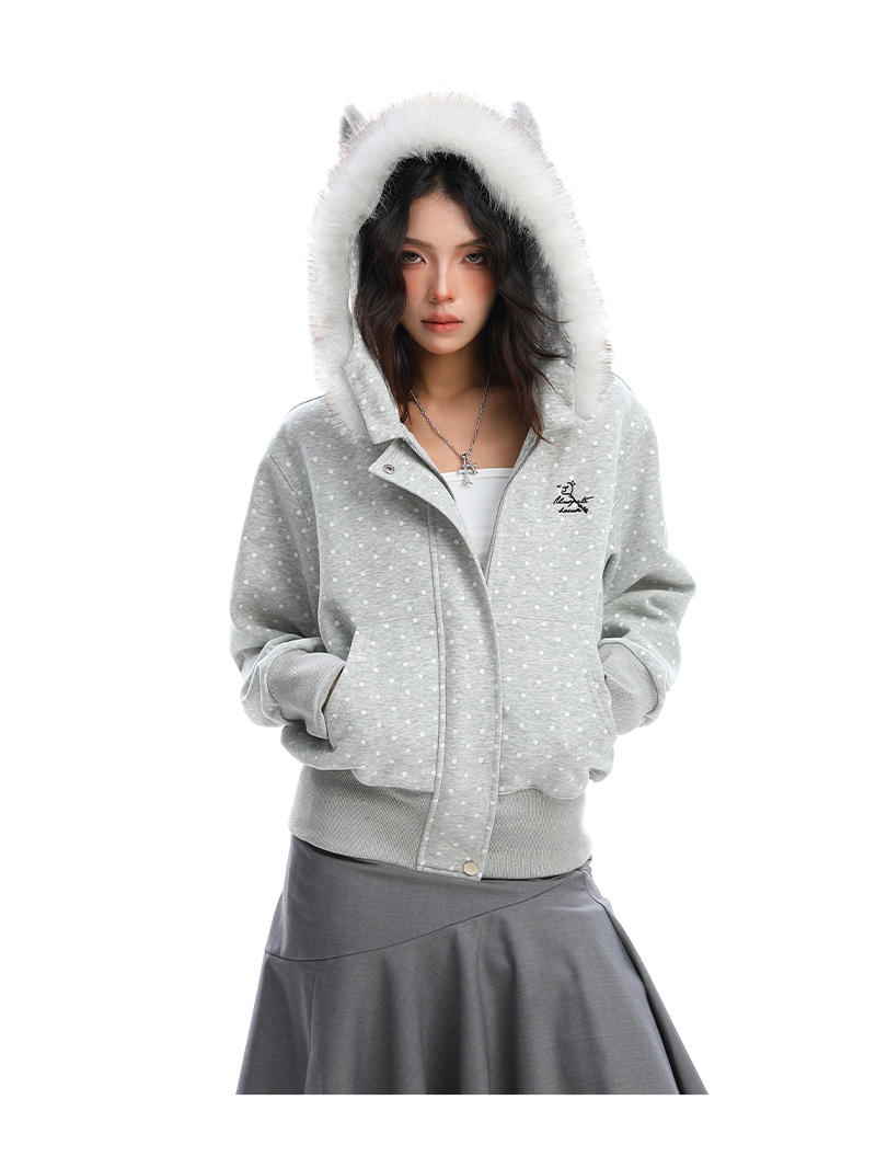 Camouflage Detachable Plush Collar Hooded Sweater Women's Cardigan Short Coat