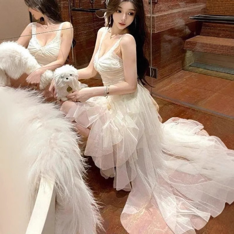 Elegant High-society Gown With An Offbeat Mesh Slip Dress Design