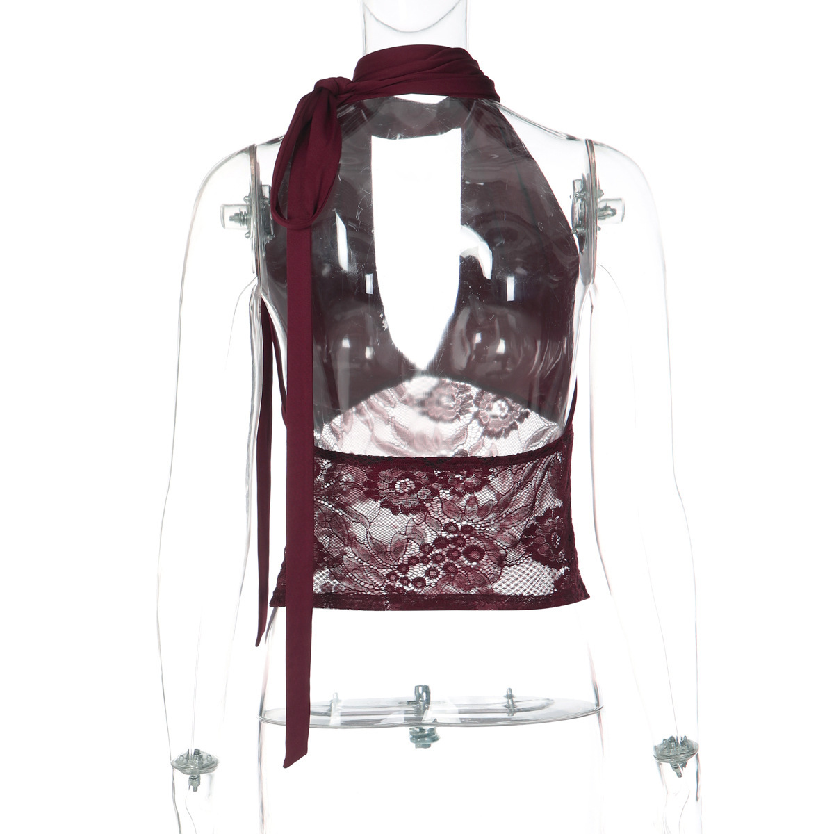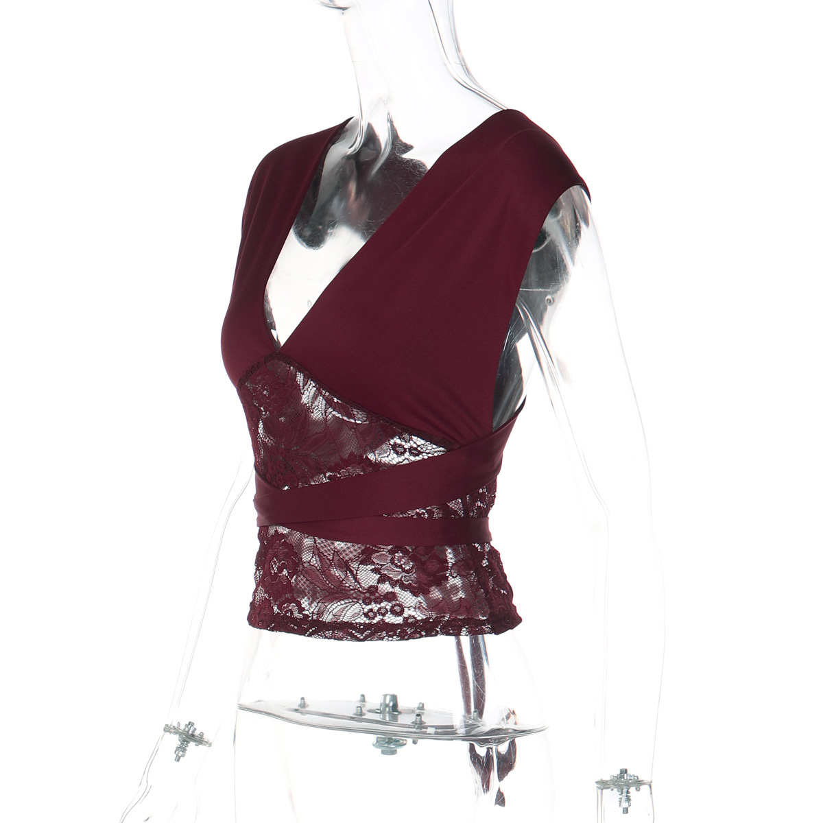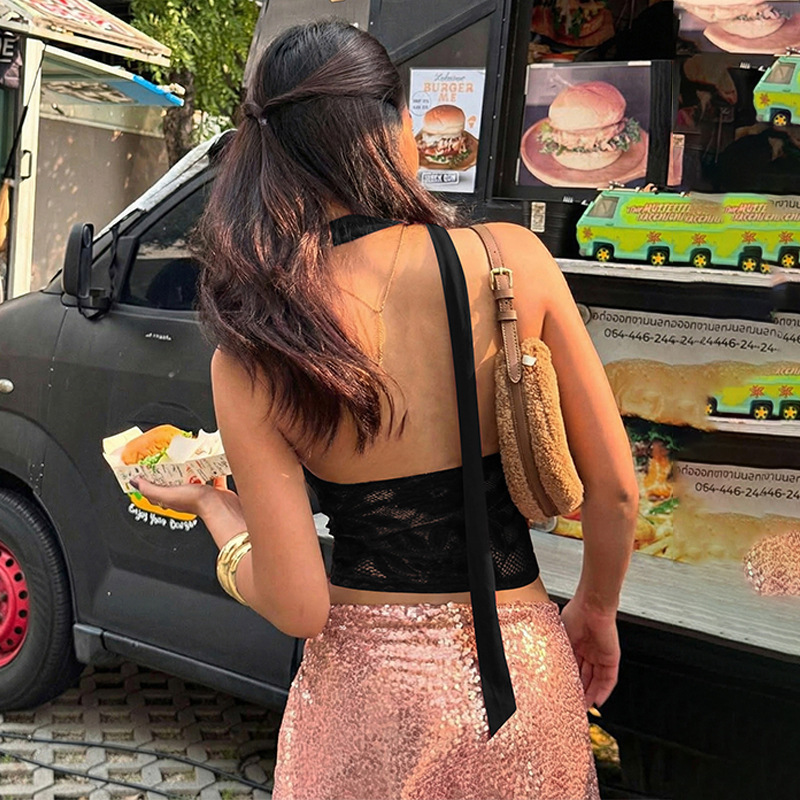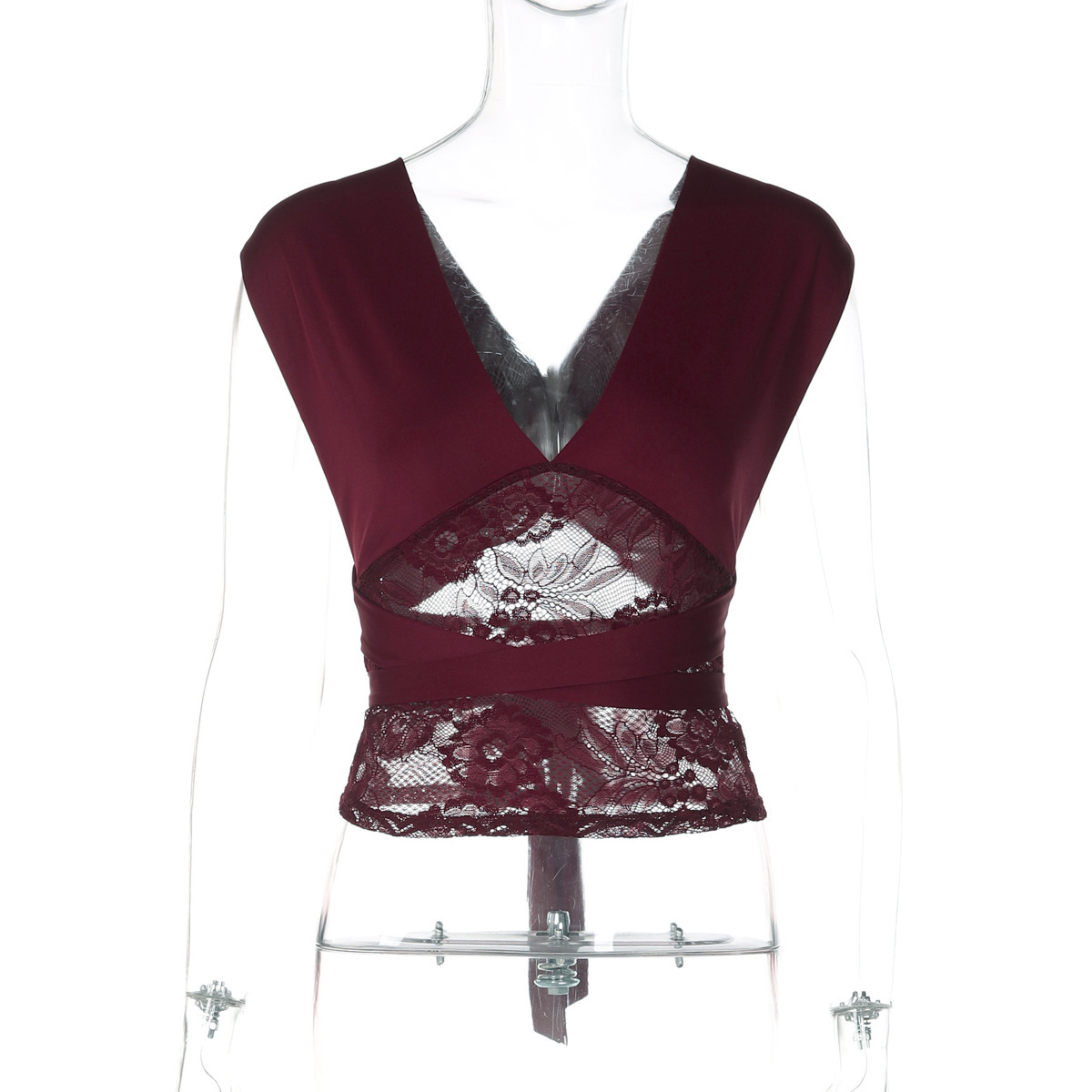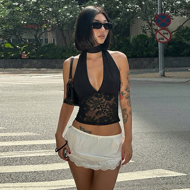 European And American-style Sheer Lace Tube Top With Sexy Patchwork Design