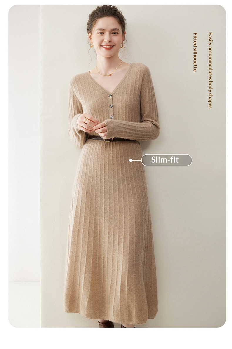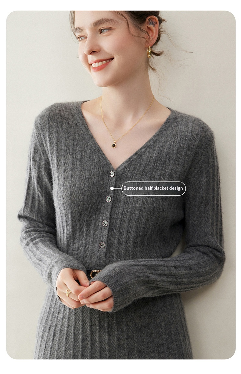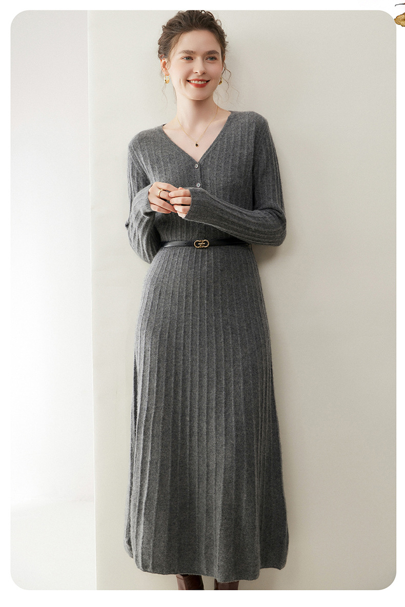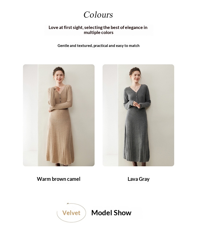 Half-zip Knitted Ribbed V-neck Maxi Dress That Falls Below The Knee