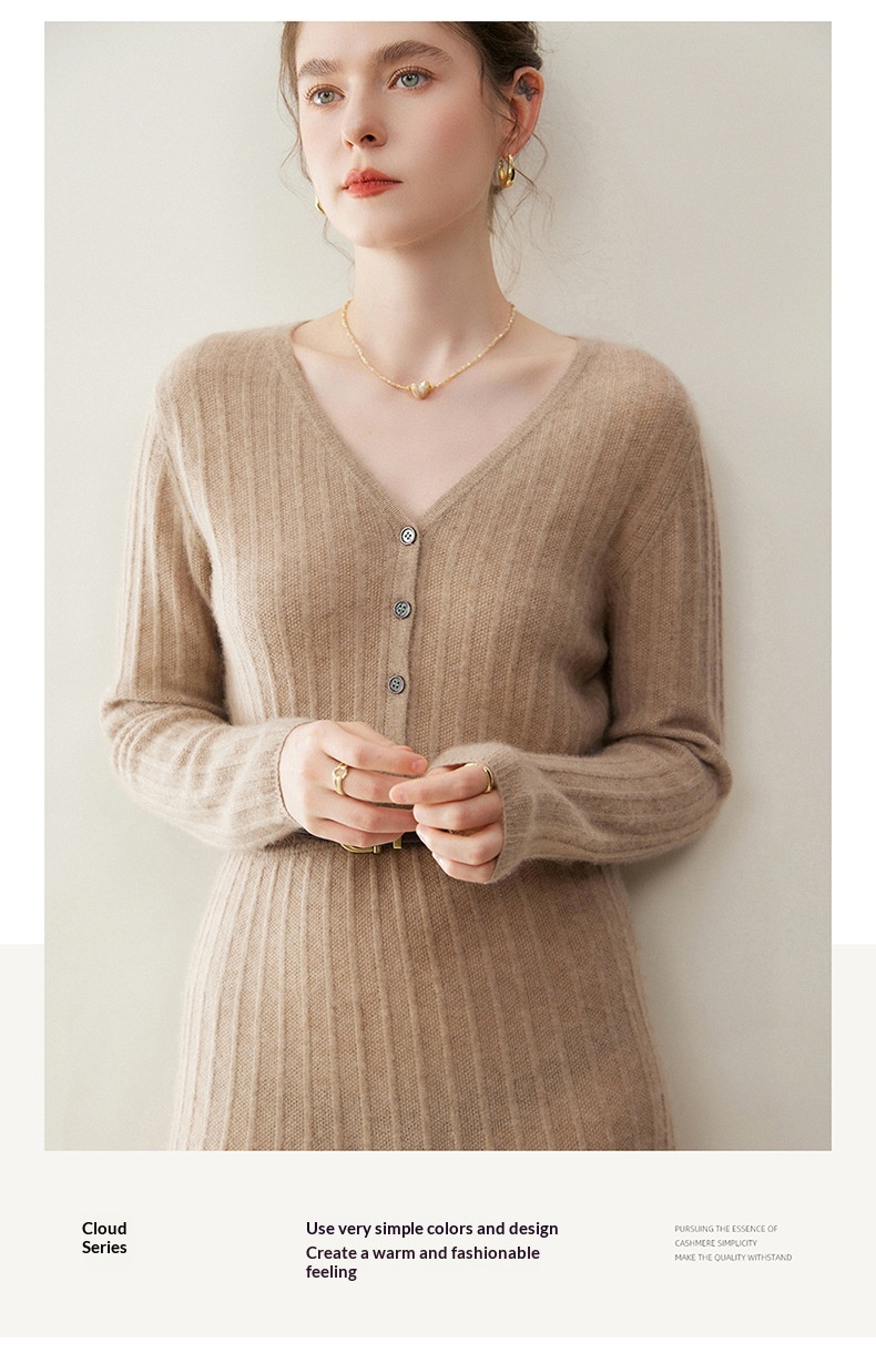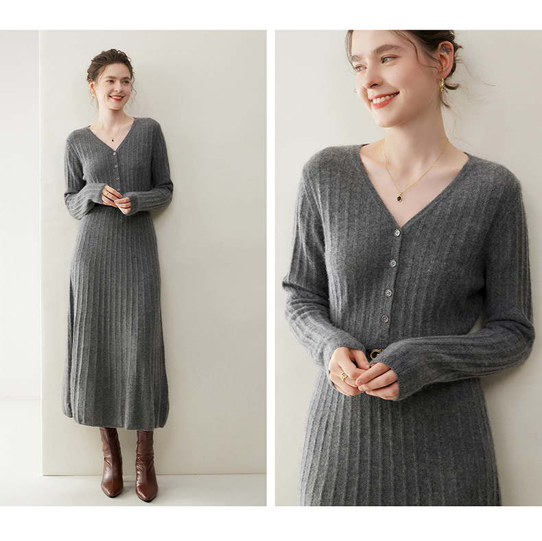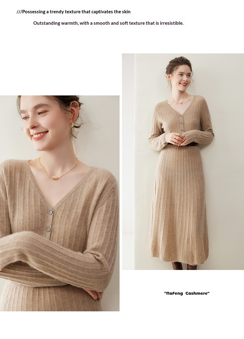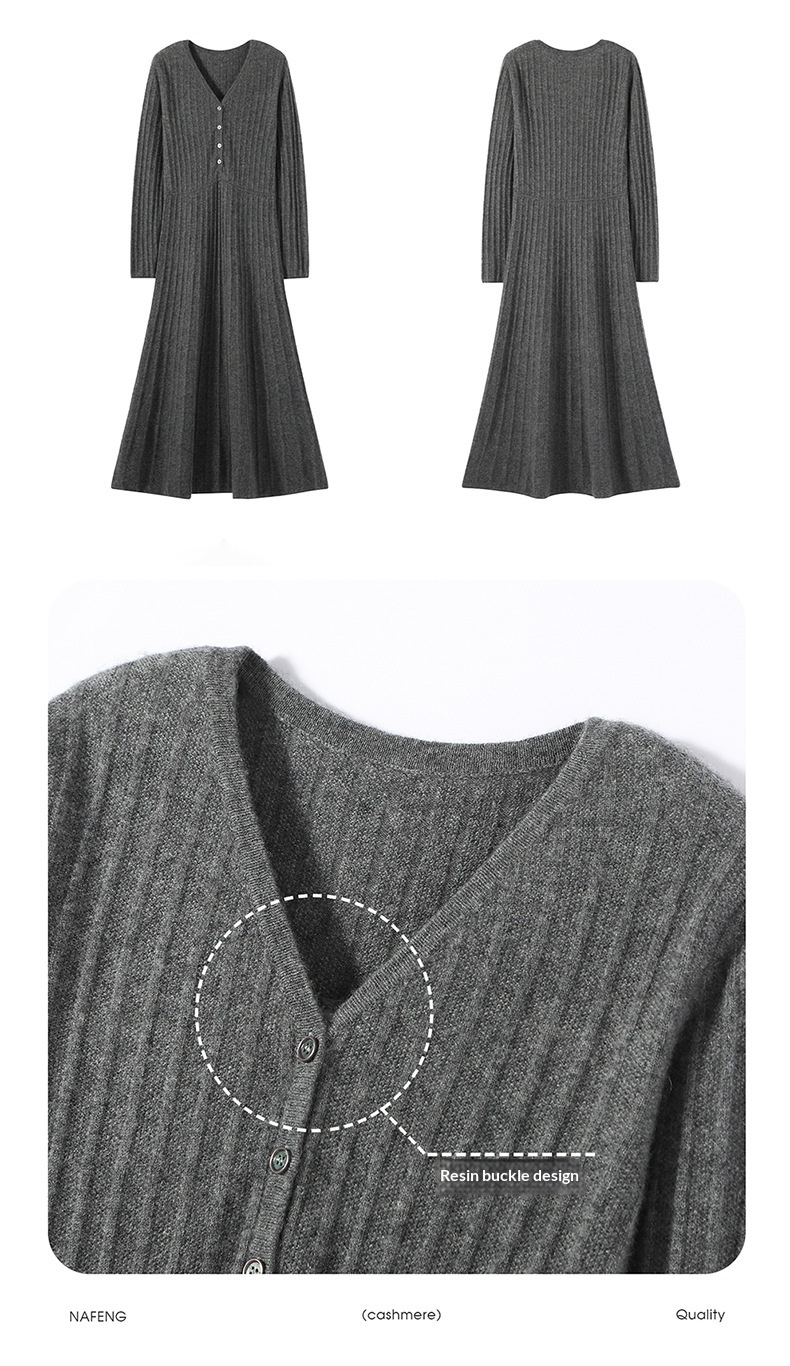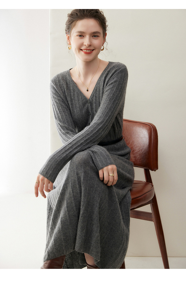 Half-zip Knitted Ribbed V-neck Maxi Dress That Falls Below The Knee