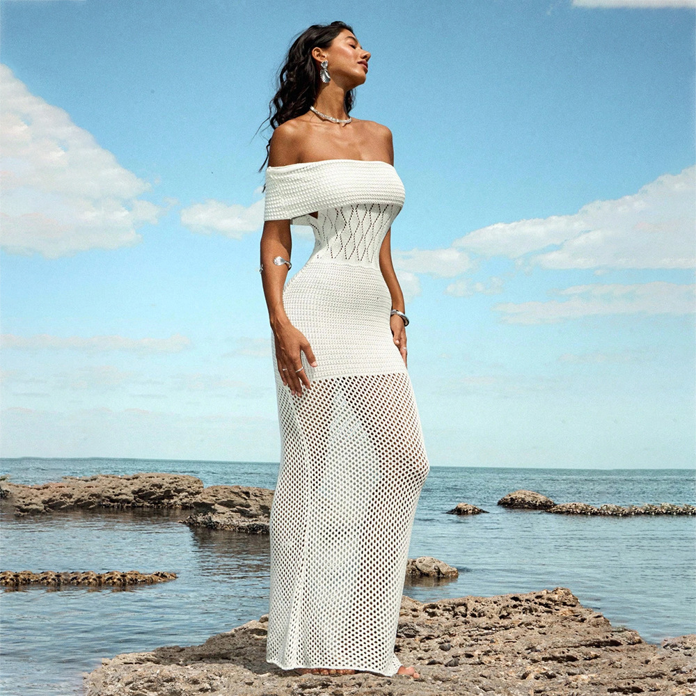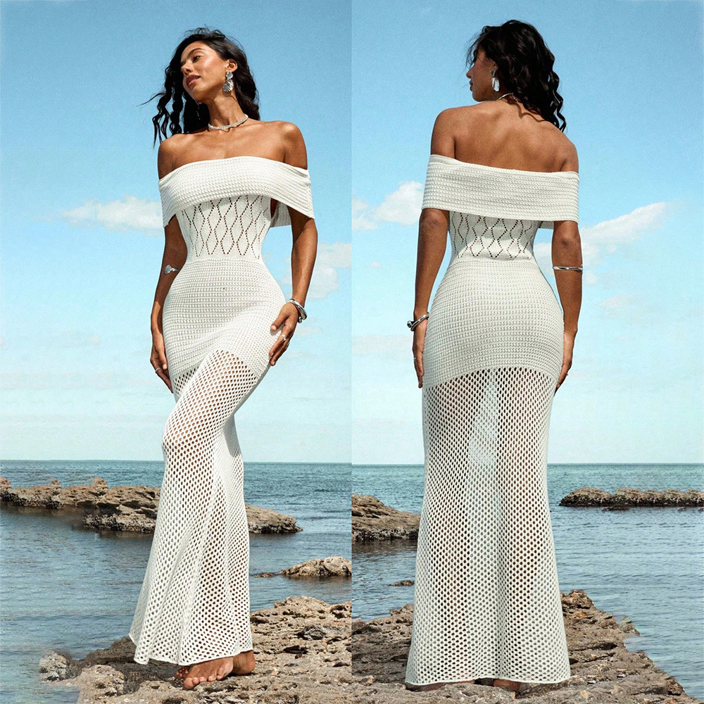 Sexy Knitted Hollow-Out Beach Cover-Up Bikini Swimsuit Beach Dress