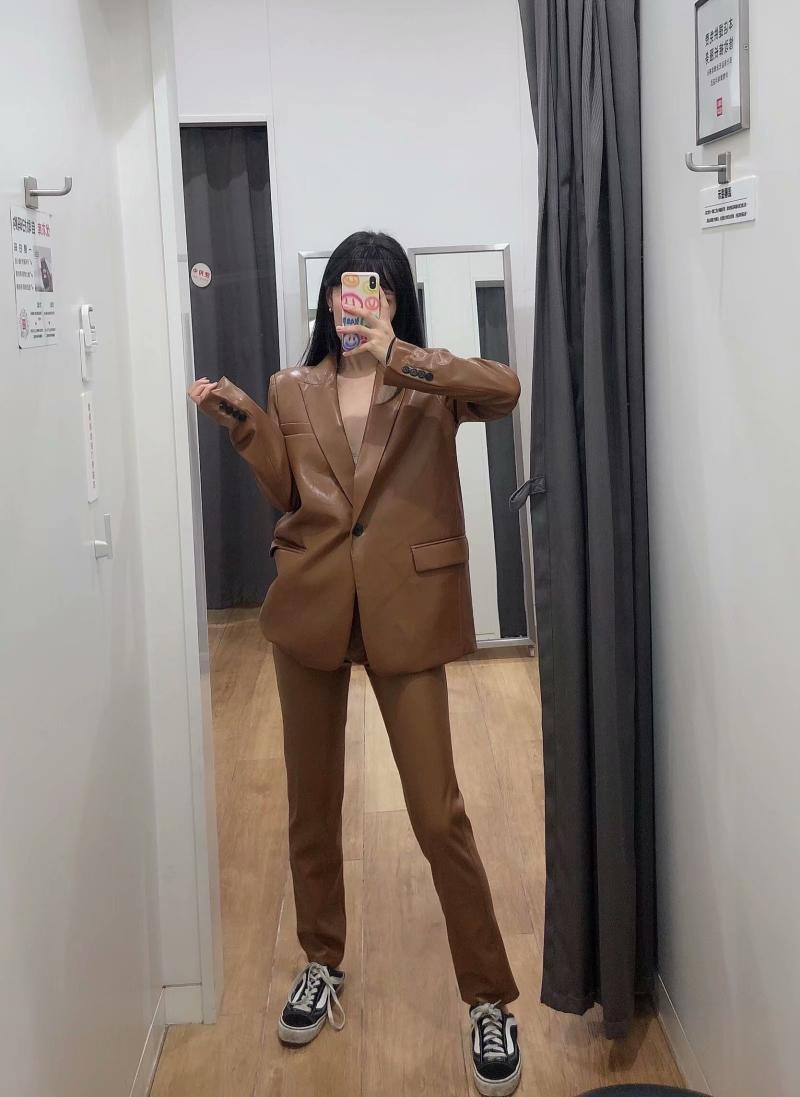 Trendy Temperament Faux Leather Suit Jacket