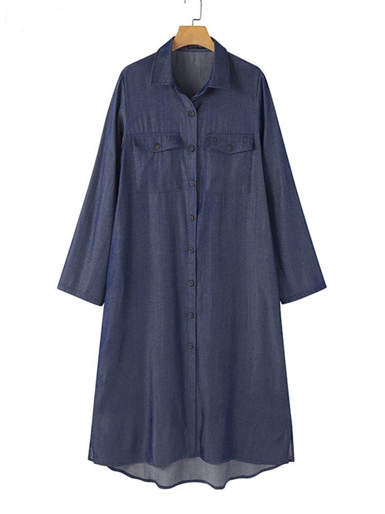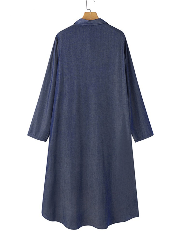 Womens Denim Casual Dress With Shirt Collar
