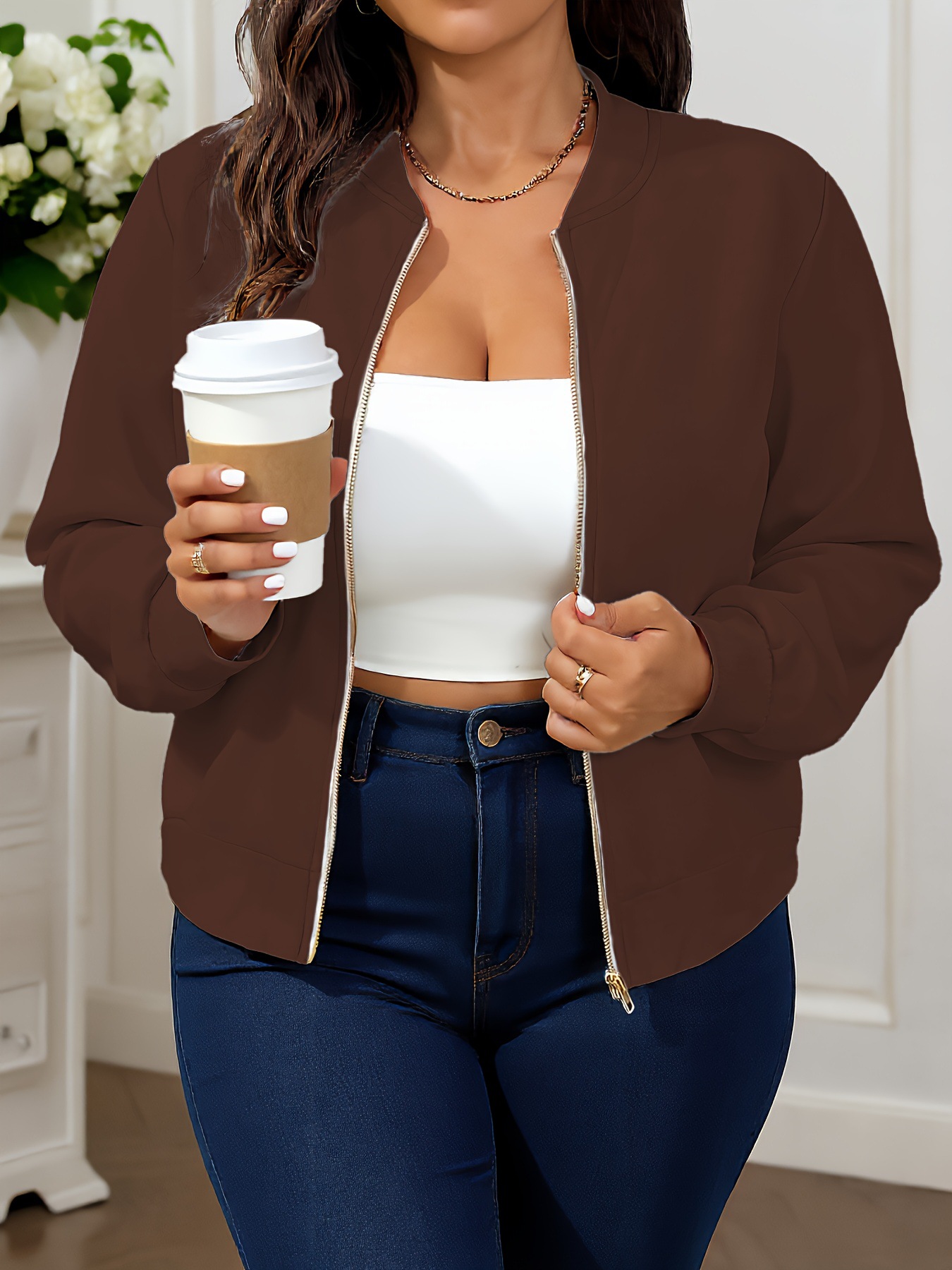 Women's New Solid-Colored Zip-Up Baseball Collar Jacket