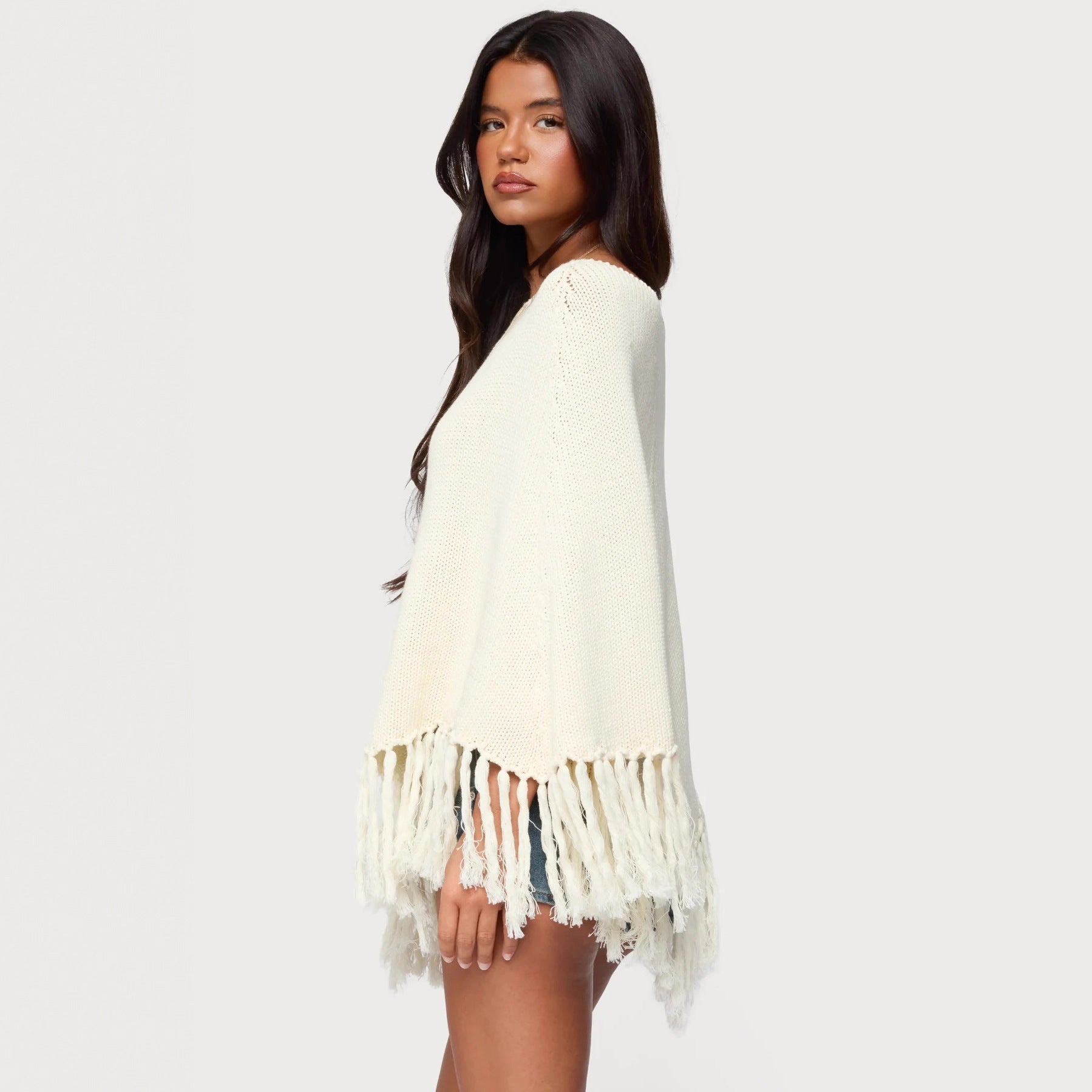 Womens Solid-Color Tassel Wool Top