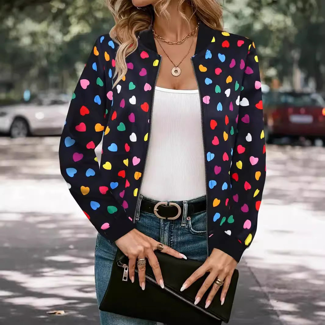 Zipper Jacket Small Thin Long-sleeved Top Colorful Printing