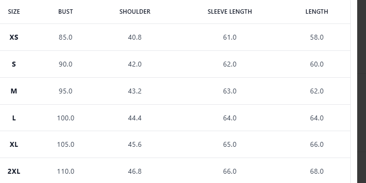 Size: XS, S, M, L, XL, 2XL