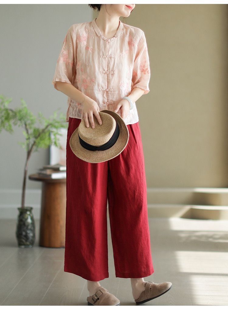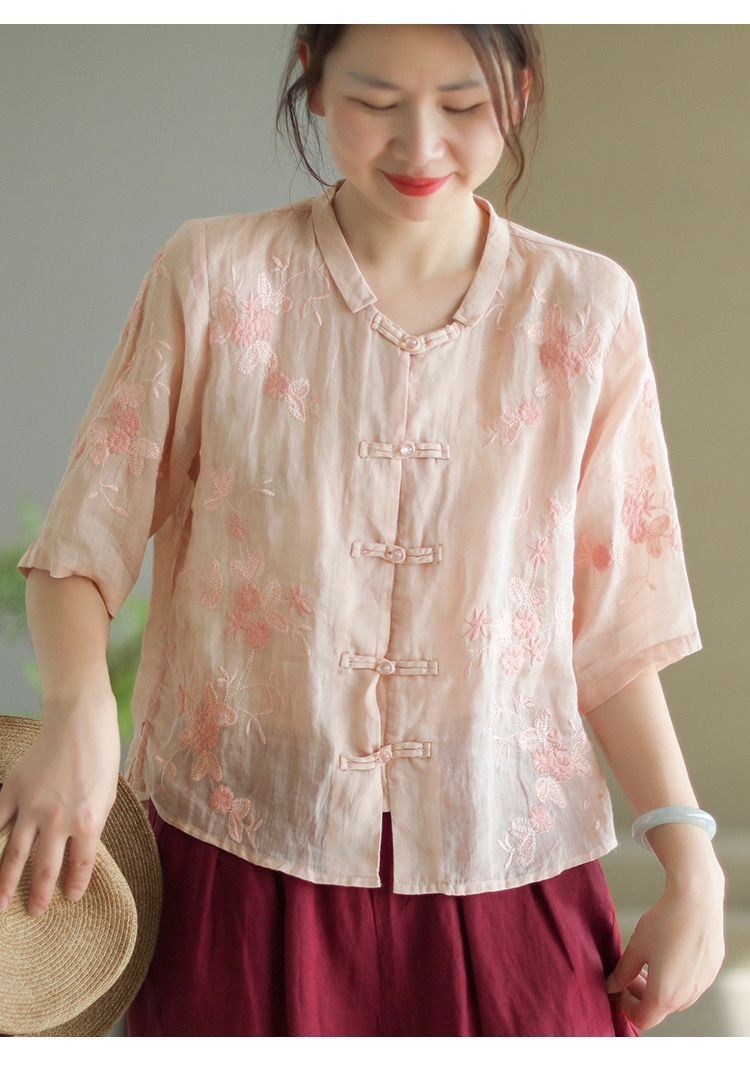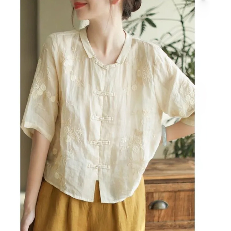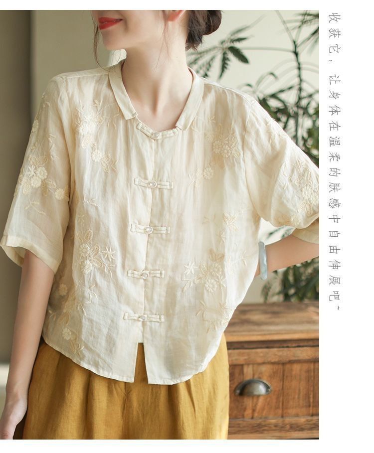 Cotton And Linen Embroidery Embroidered Shirt For Women Summer