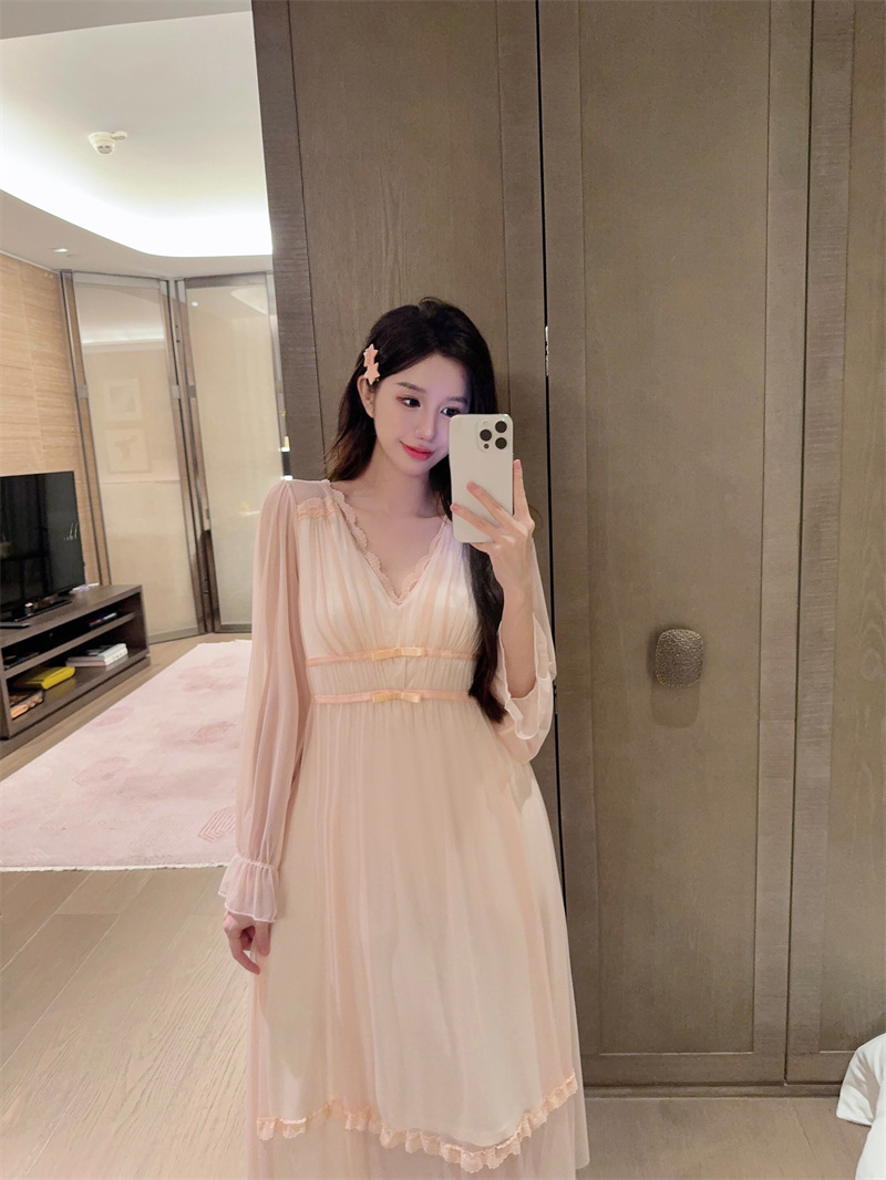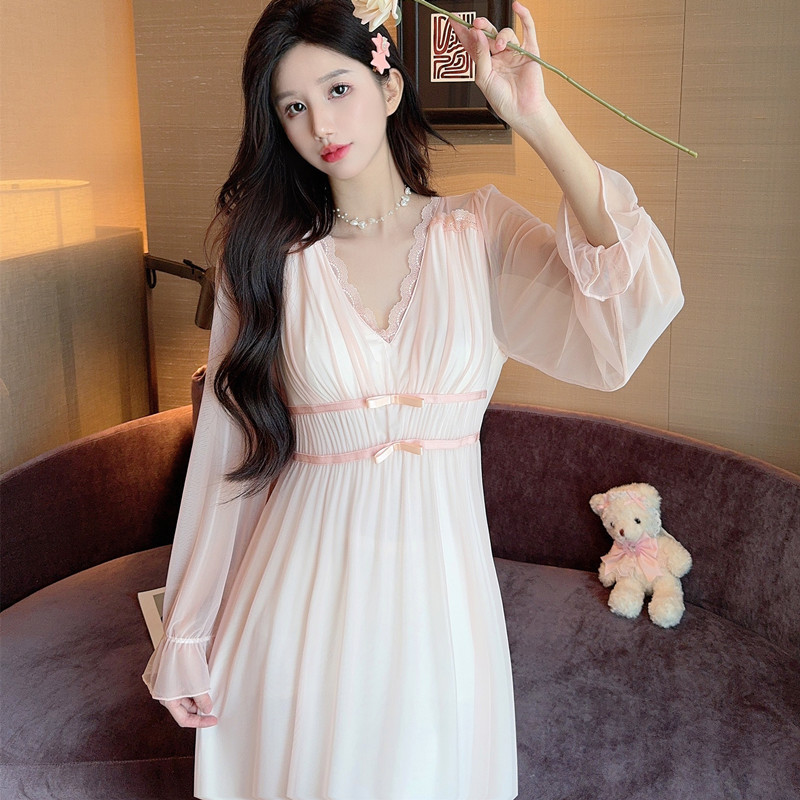 Cute Princess-Style Nightgown For Women Fairy-Like Pajamas With Built-In Bra Pads Cozy Loungewear