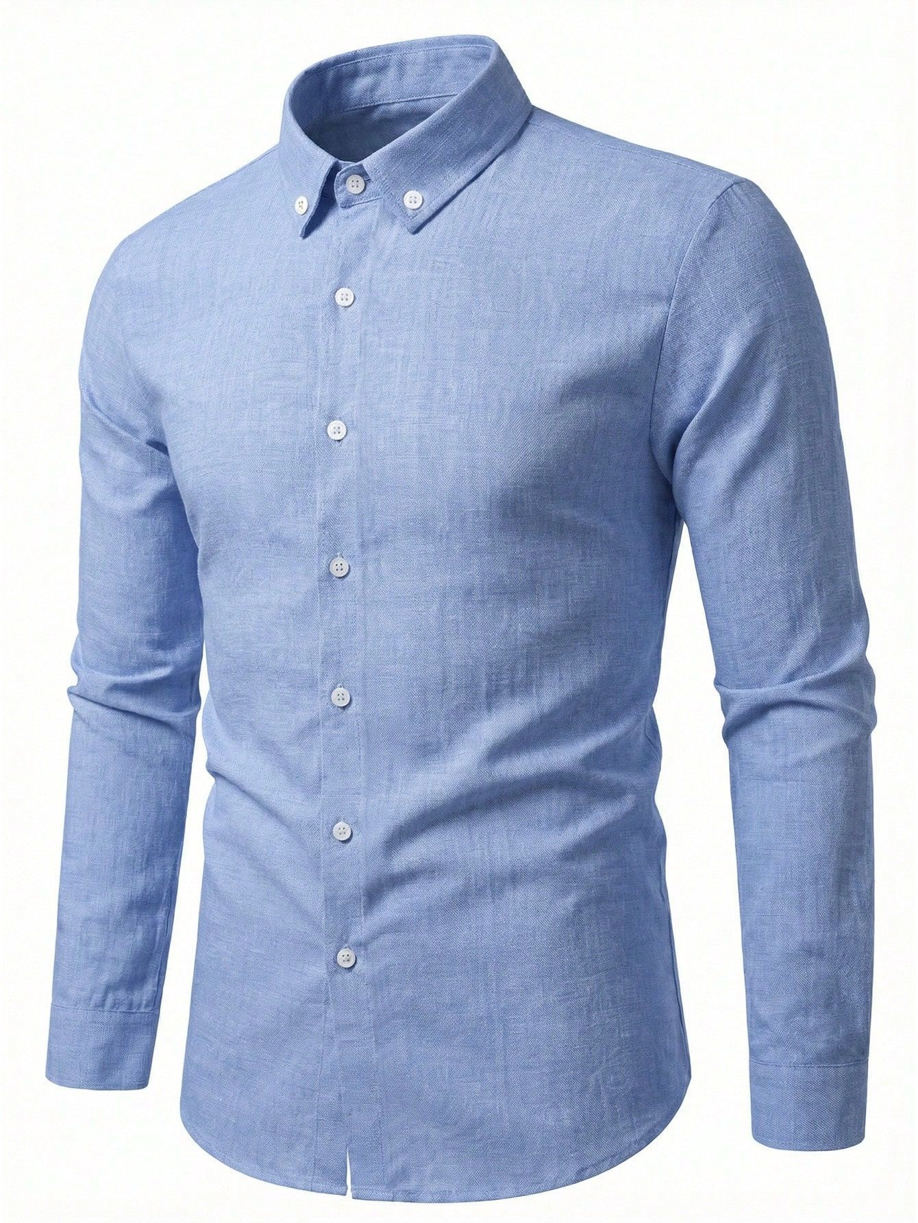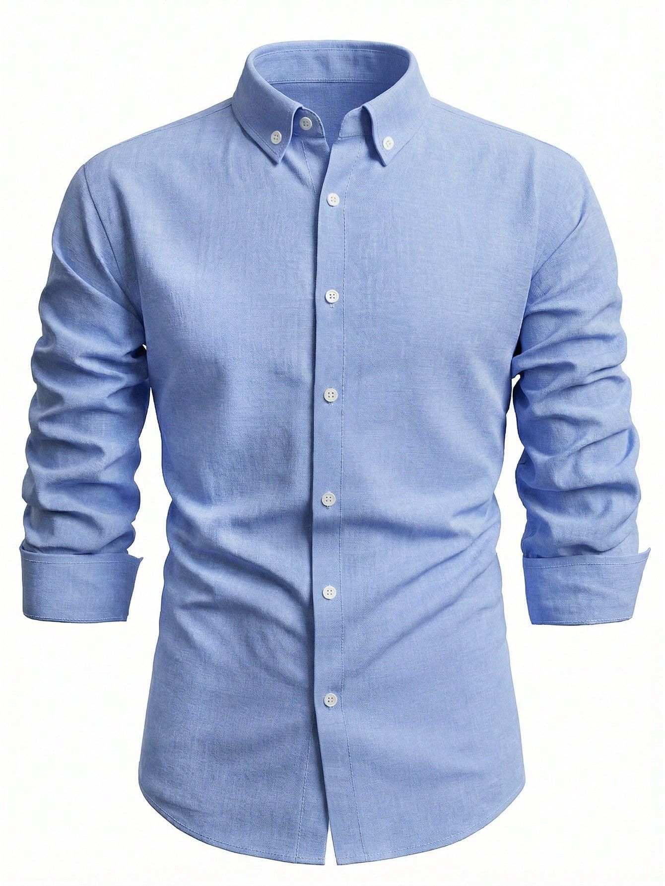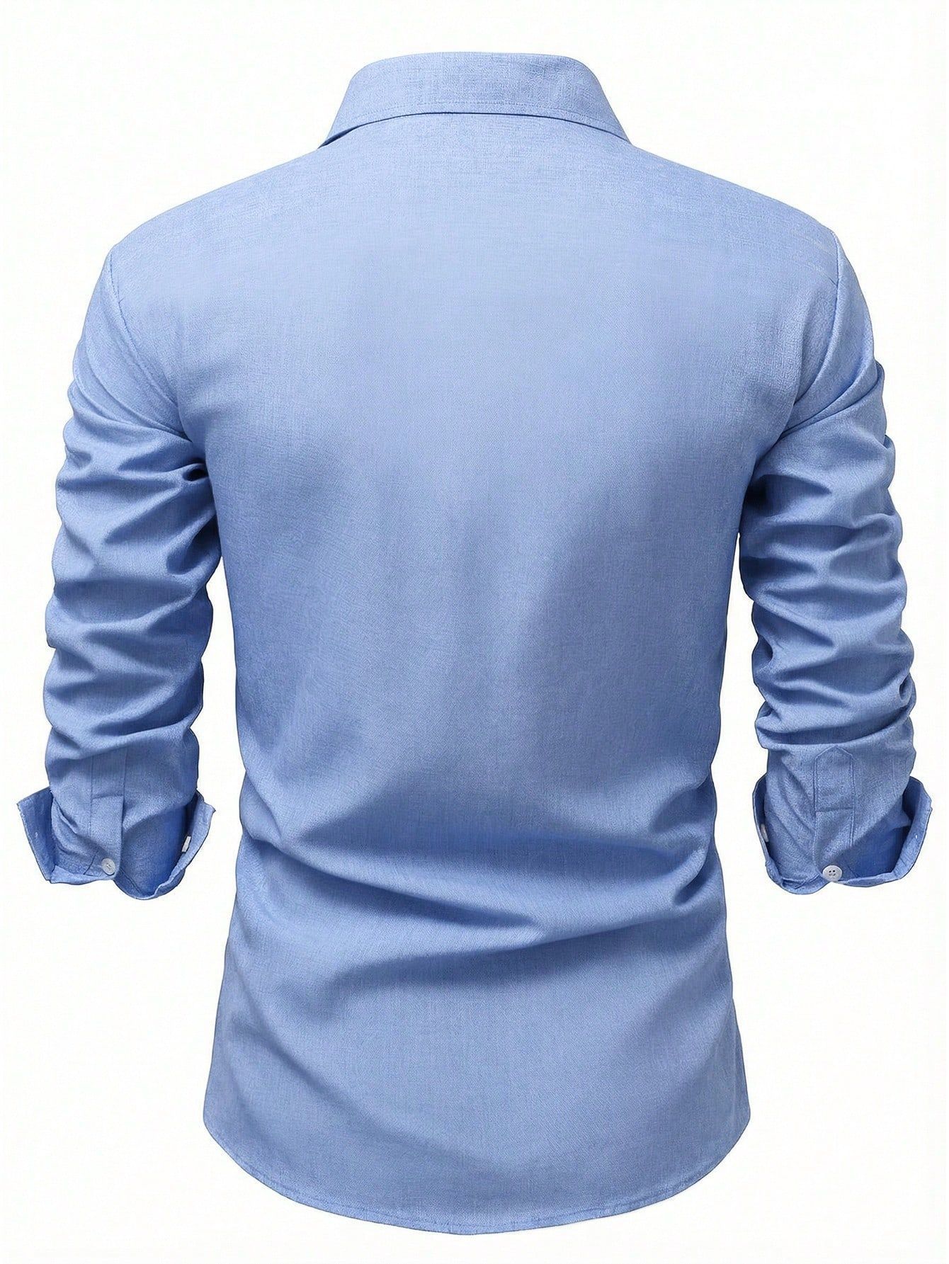 Mens Long-Sleeve Solid-Color Casual Breathable Shirt