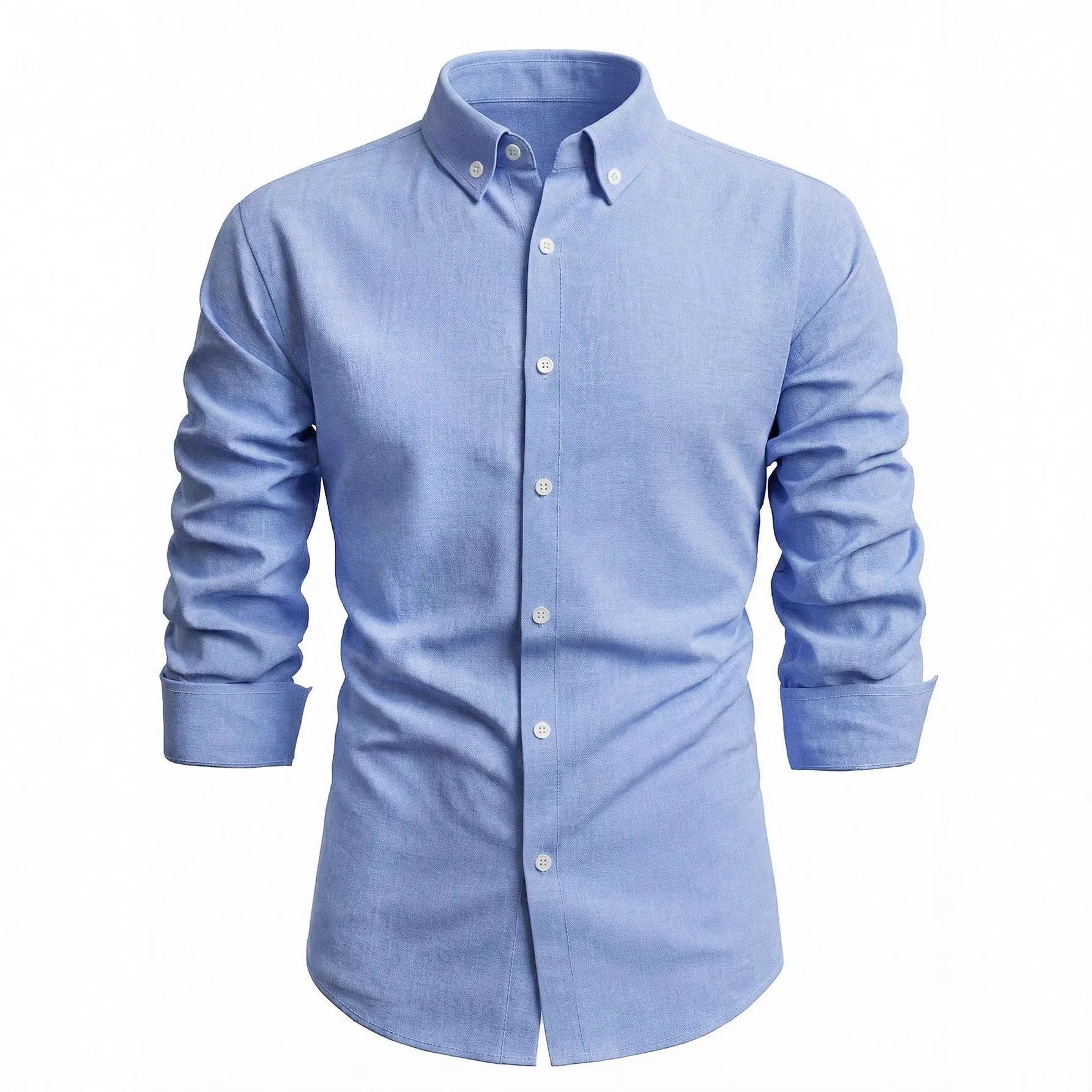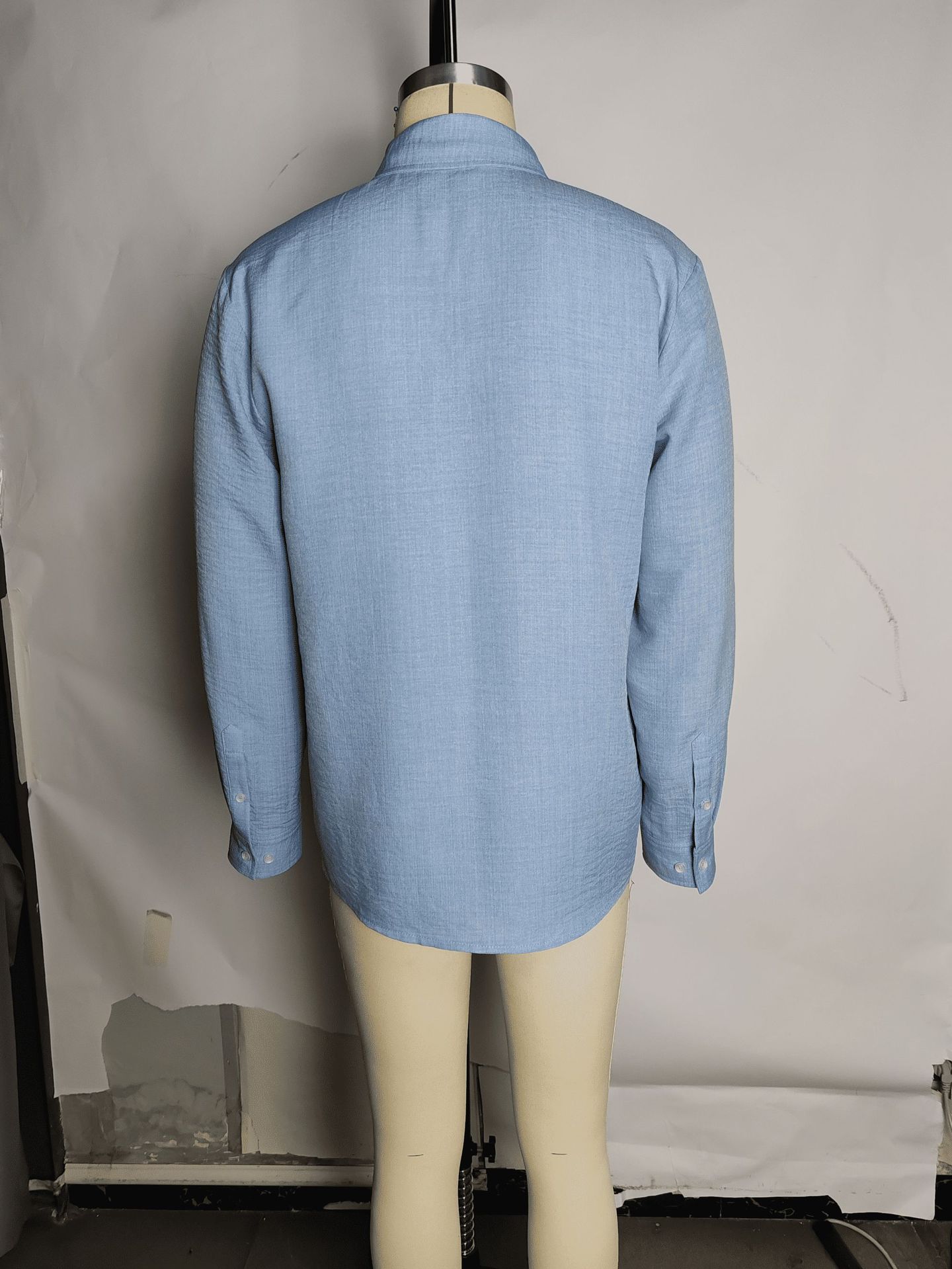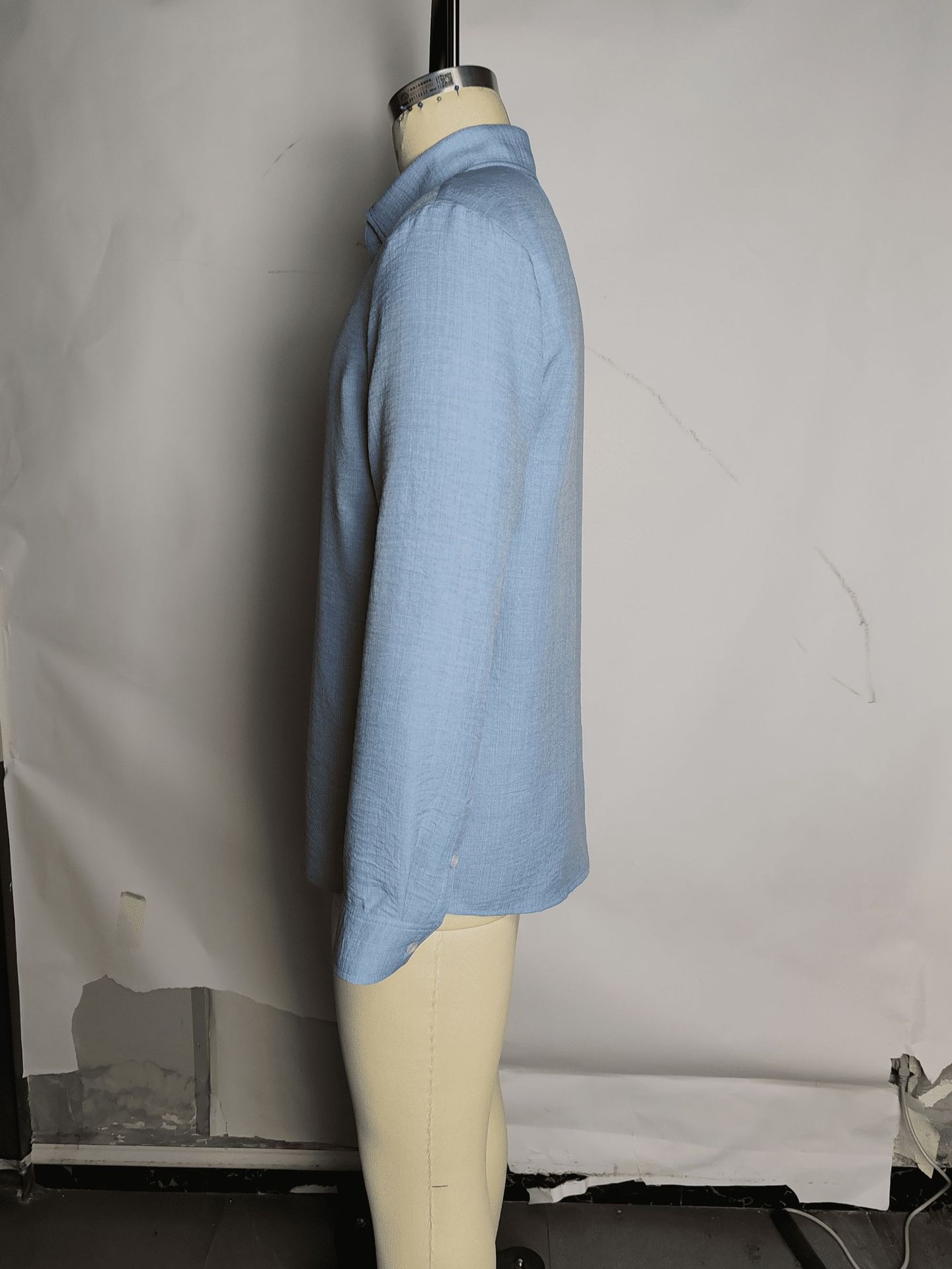Mens Long-Sleeve Solid-Color Casual Breathable Shirt