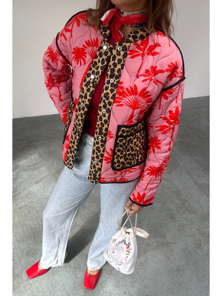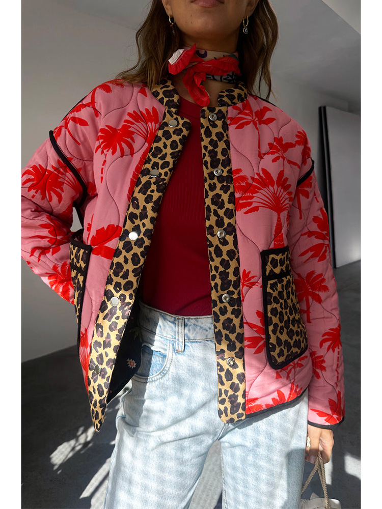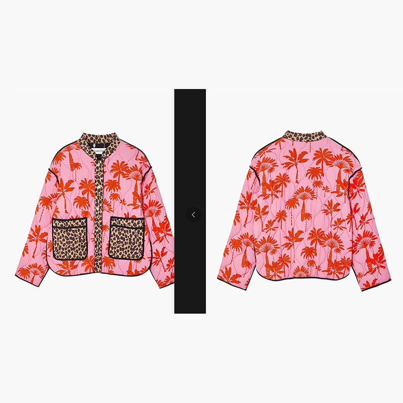 Stitching Printing Women's Cotton-padded Clothes Cotton Clothing Long Sleeve Stand Collar Fashion Personality