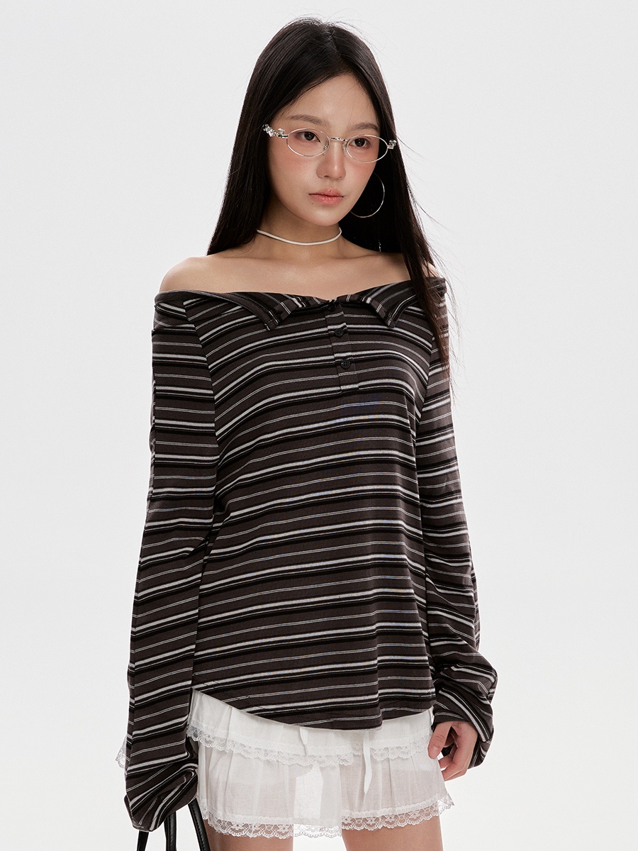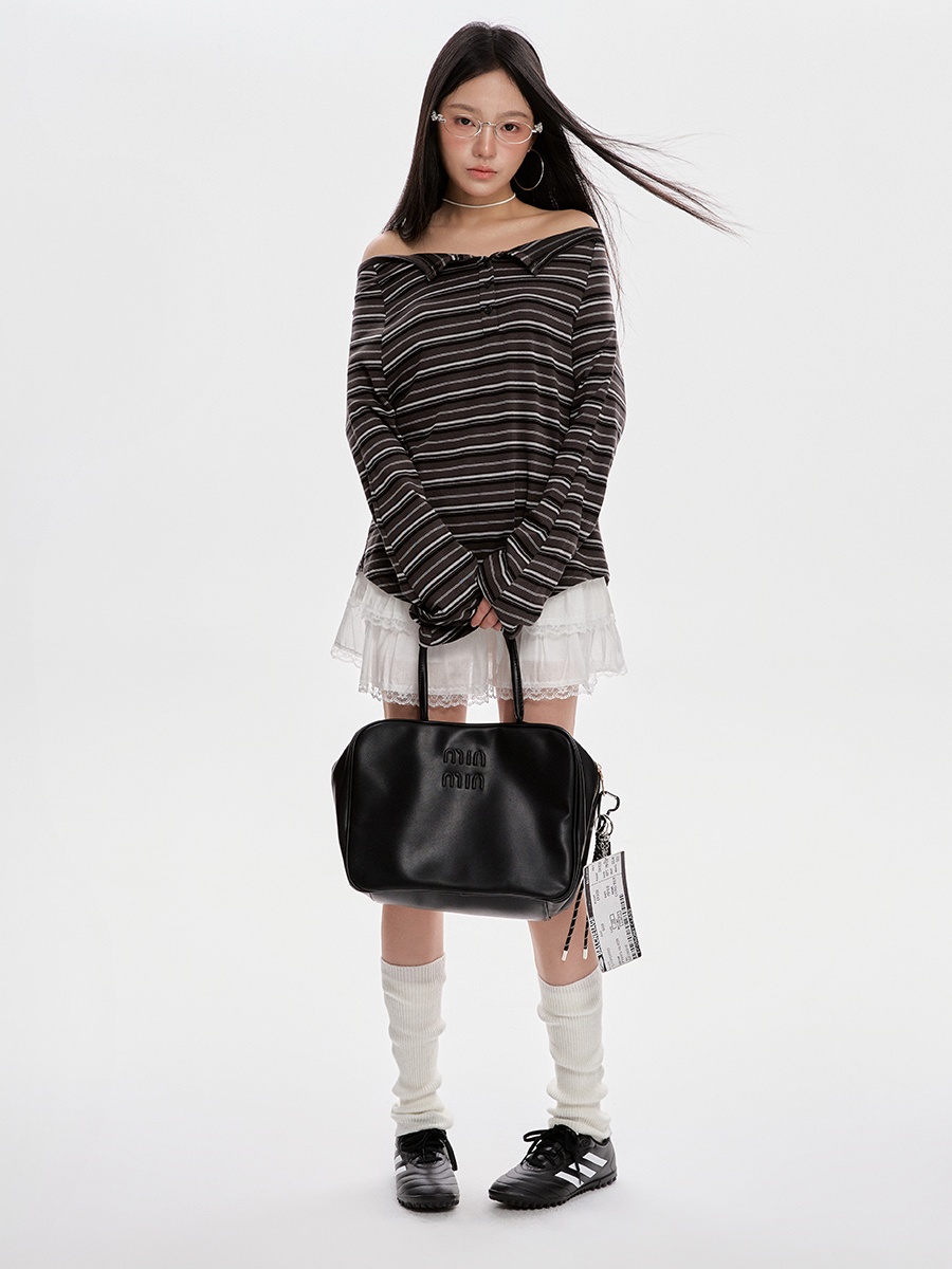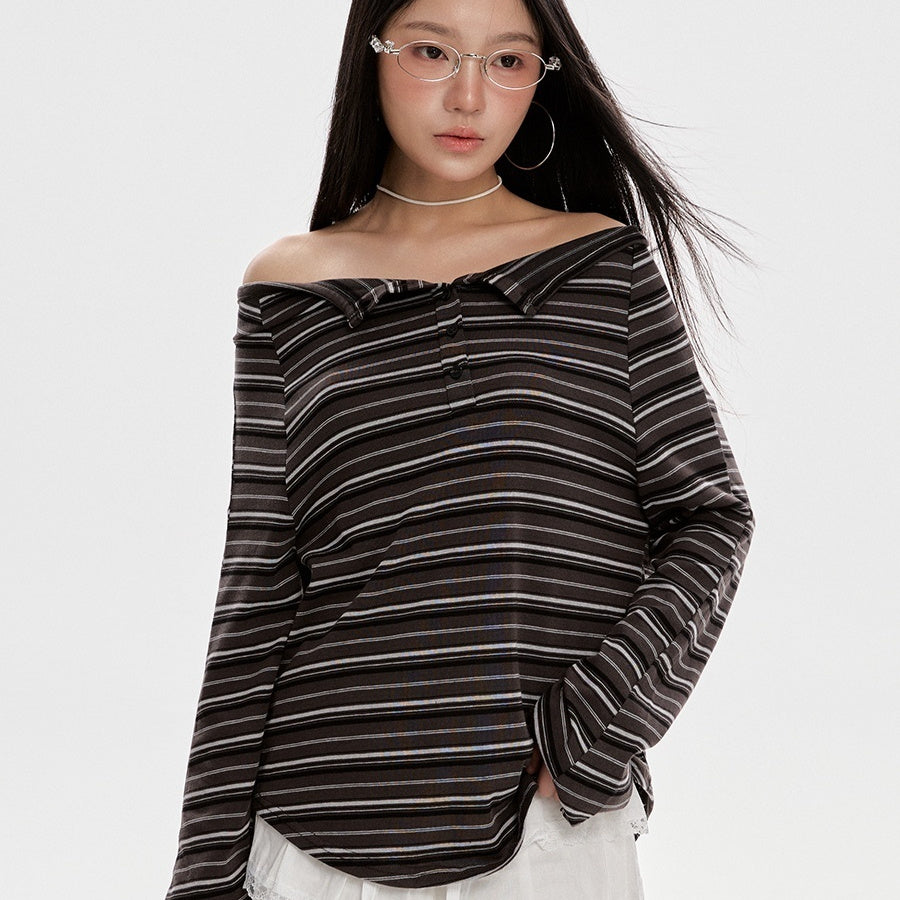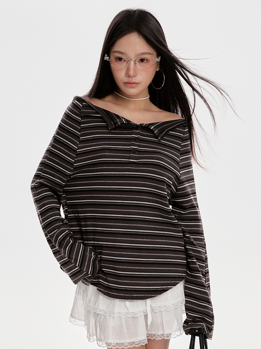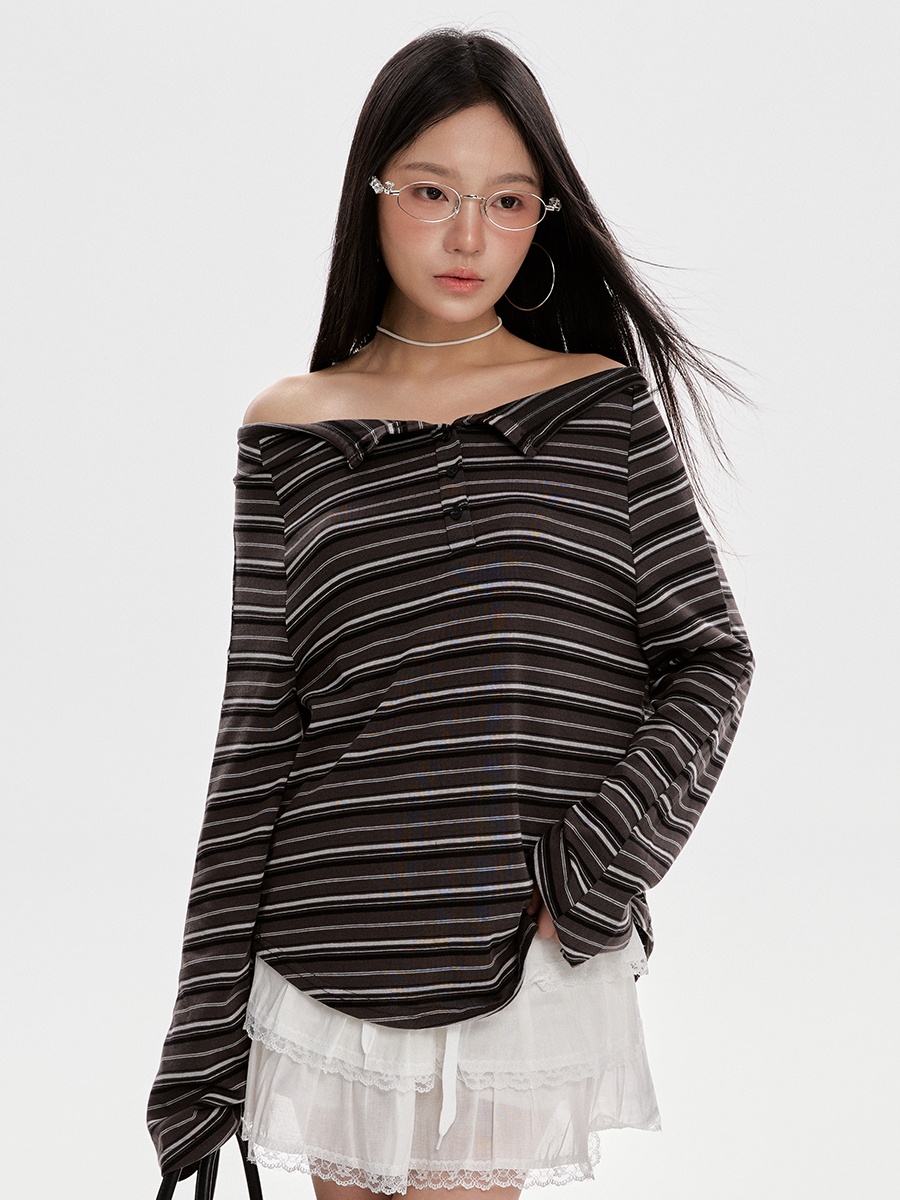 Striped Boat-neck Long-sleeve T-shirt Women's Style New Springautumn Collection