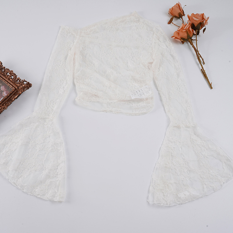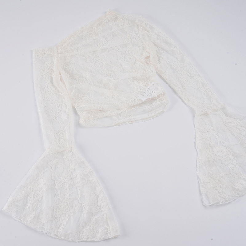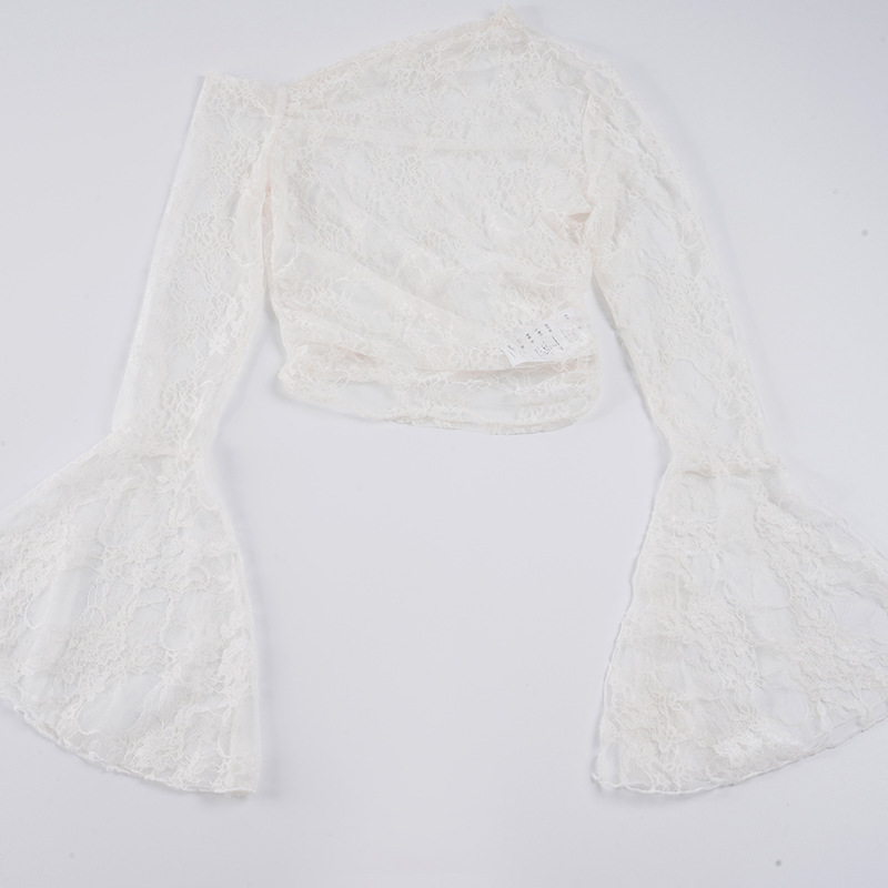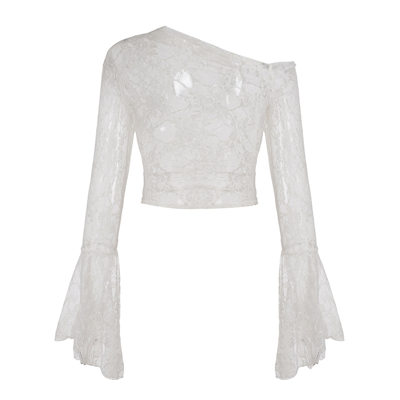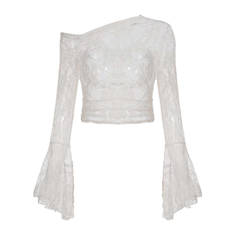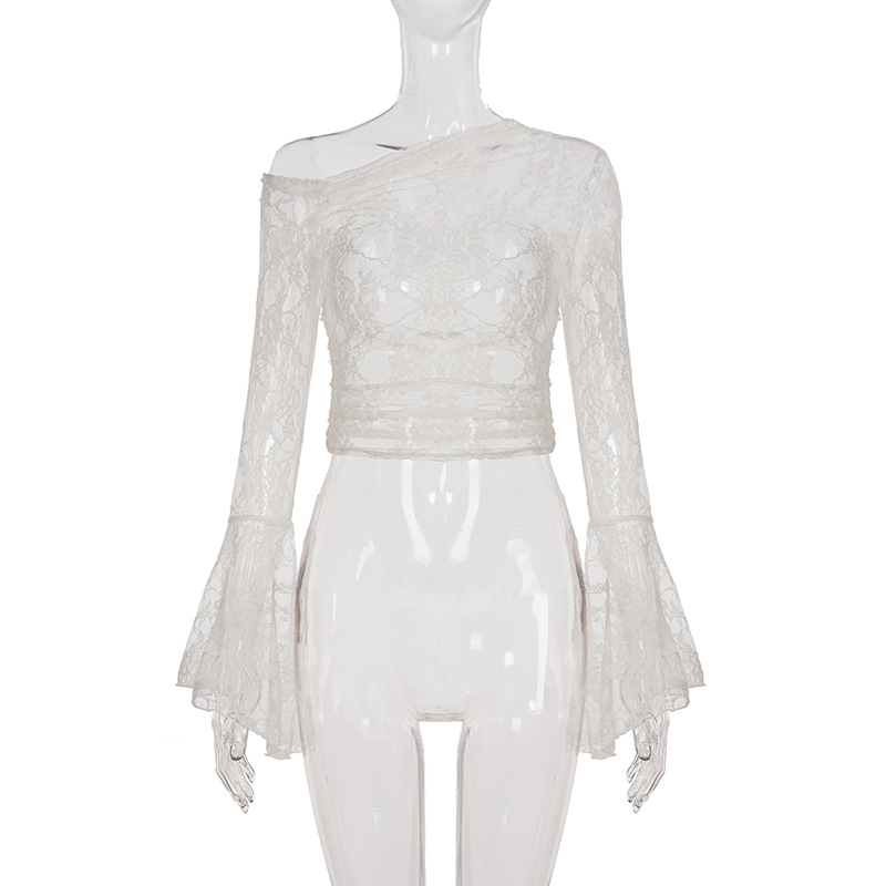 European And American Instagram-style Elegant Off-shoulder Flared-sleeve Figure-hugging Lace Long-sleeve Top