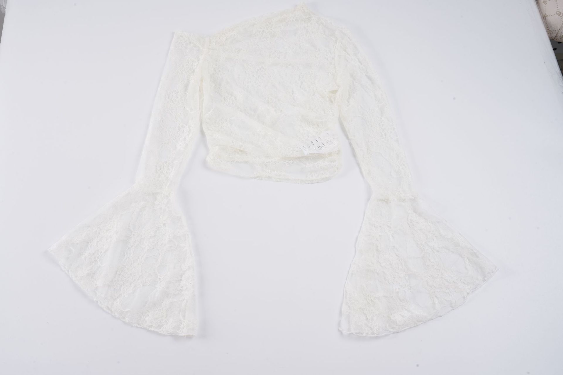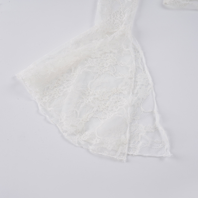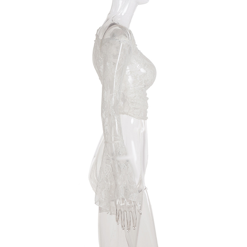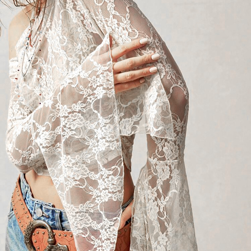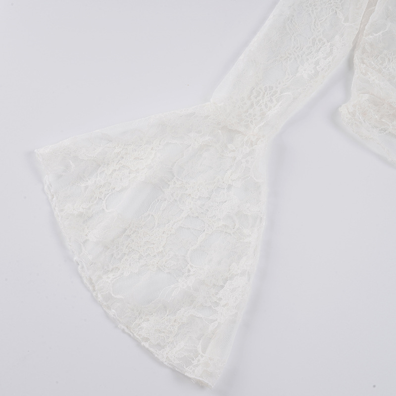 European And American Instagram-style Elegant Off-shoulder Flared-sleeve Figure-hugging Lace Long-sleeve Top