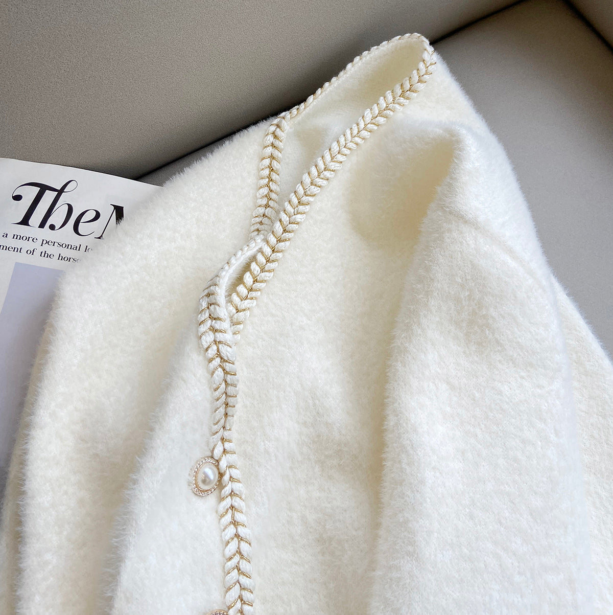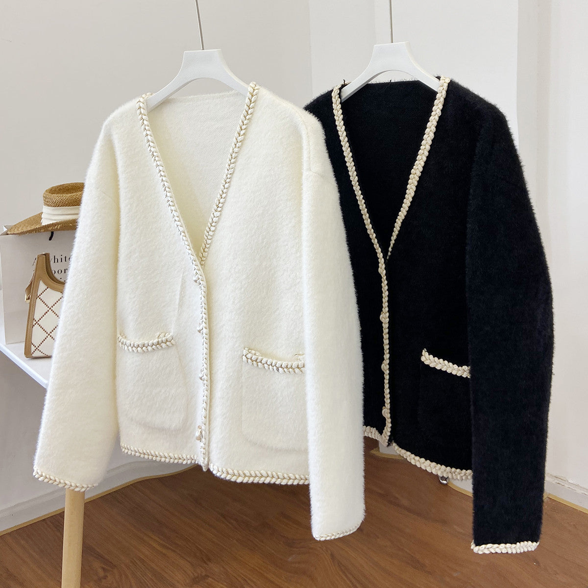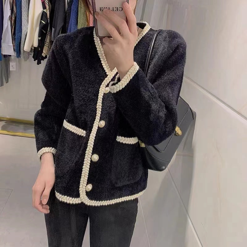 Faux Mink V-Neck Ladies Cardigan Loose And Lazy
