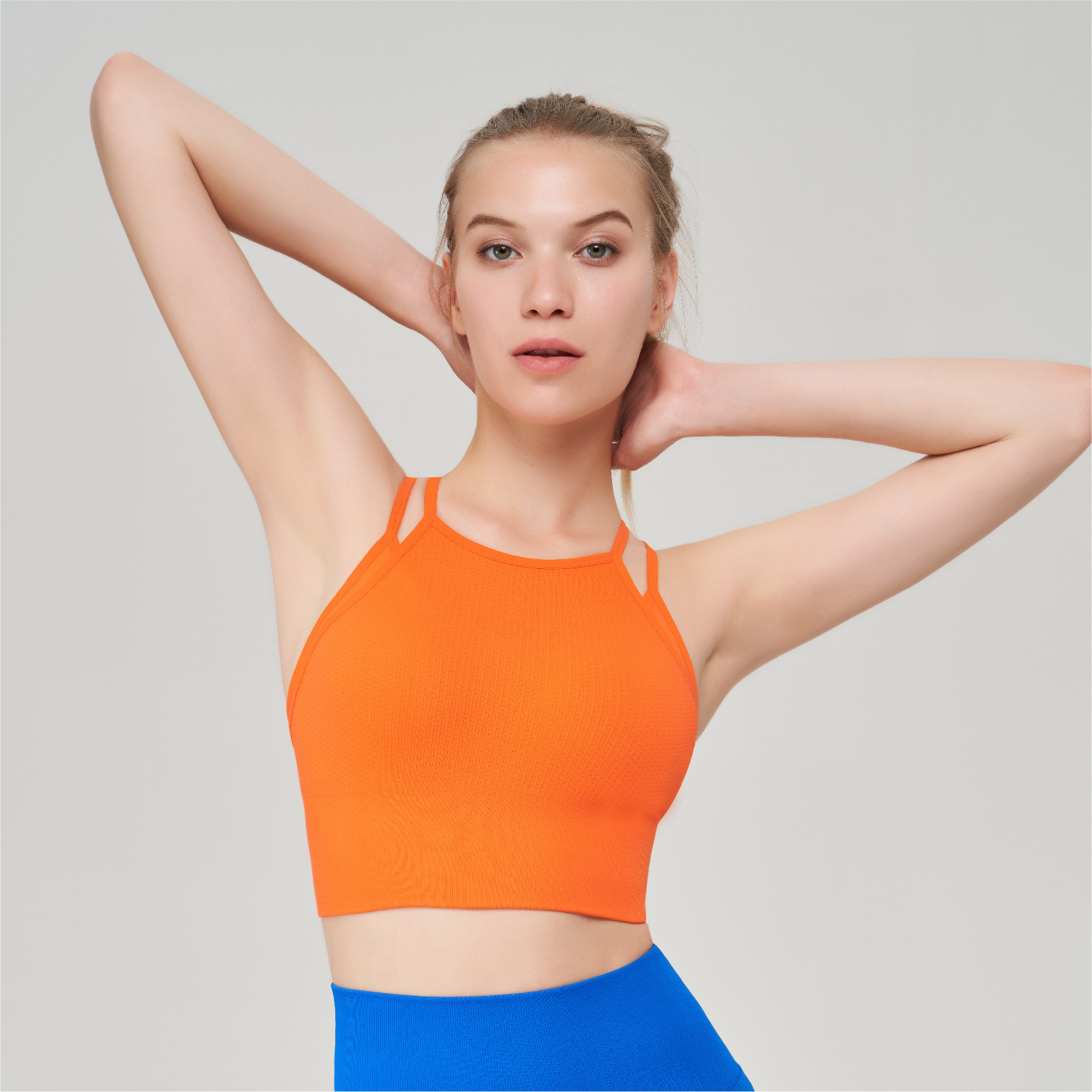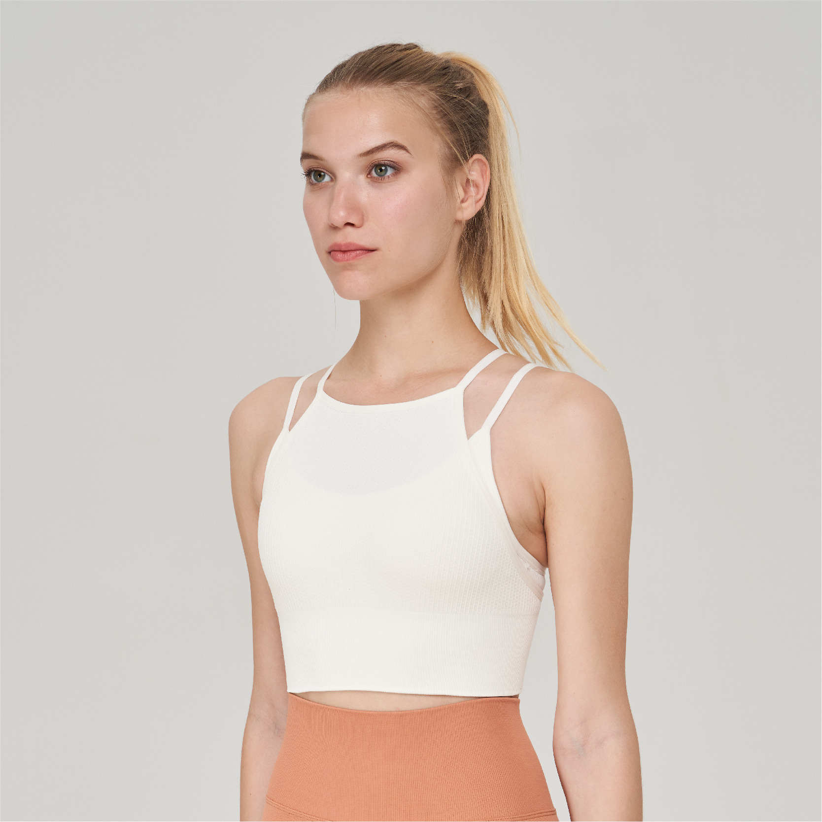 New Womens Sports Bra With A Faux Two-piece Design And Thin Shoulder Straps