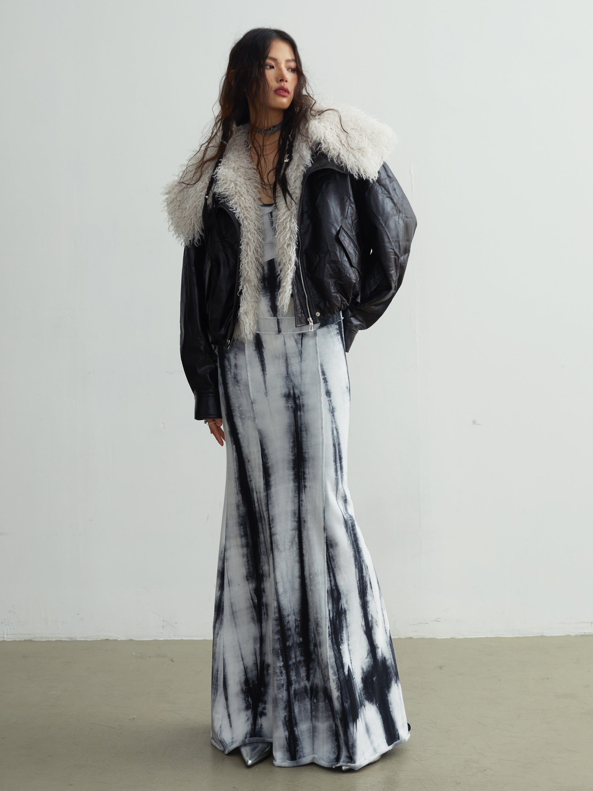 Retro Quiet Luxury Detachable Large Fur Collar Leather Jacket