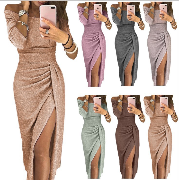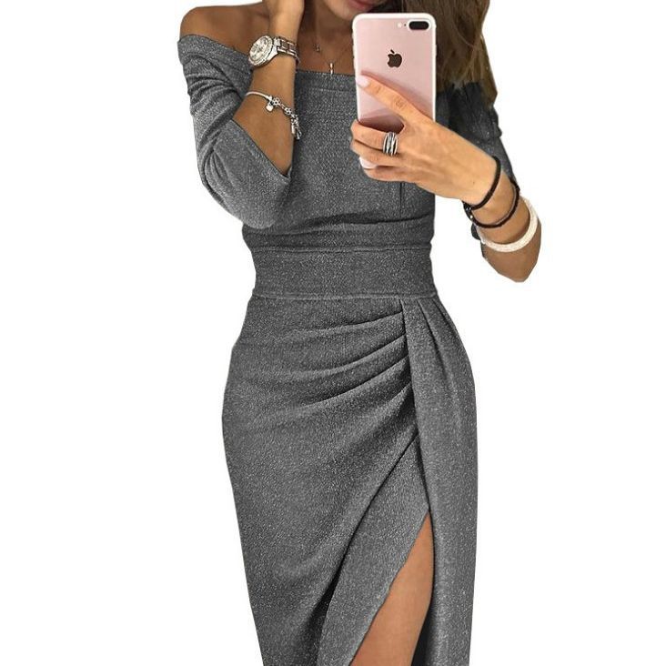 Shimmering Sheath Dress With A Keyhole Neckline And Side Slit For Women