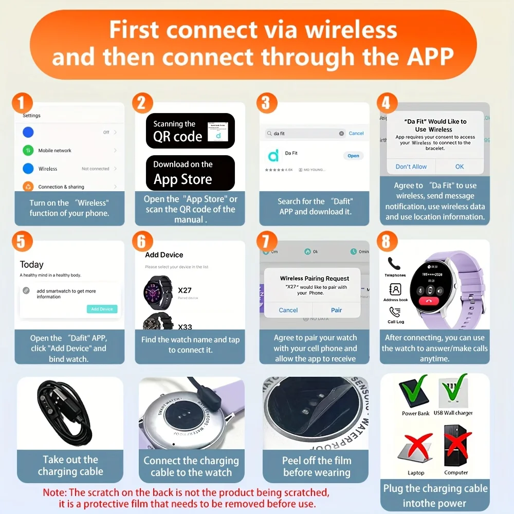 A: Turn on the Bluetooth of your cell phone, open the installed APP, search the corresponding model of the watch in the APP and connect it directly, then connect the Bluetooth of your cell phone.