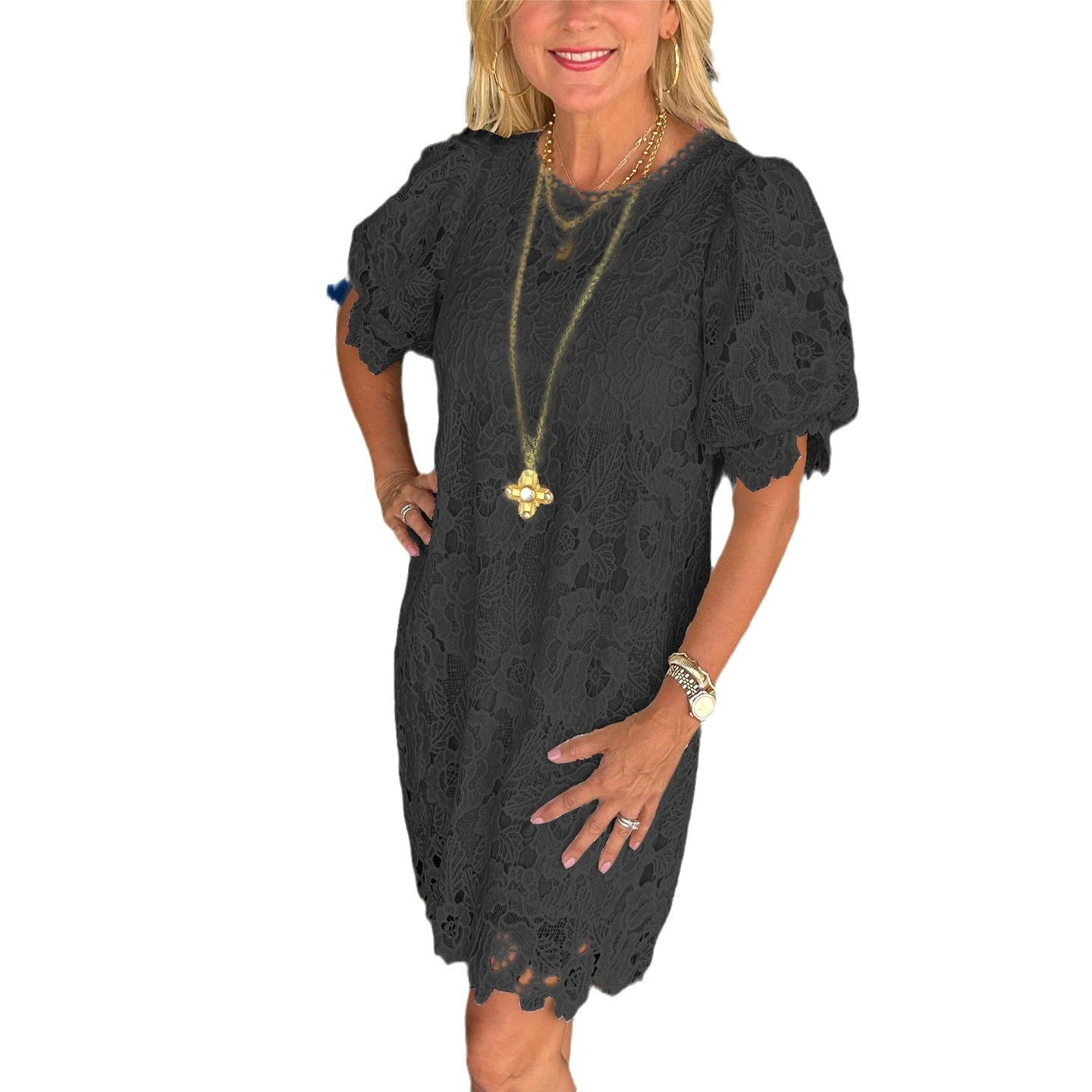 Womens Fashionable Lace Short-sleeve Dress