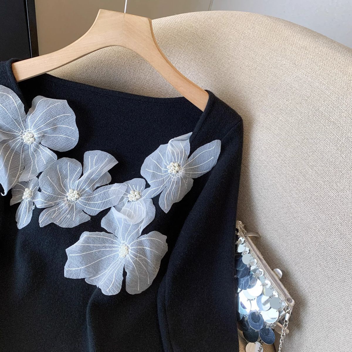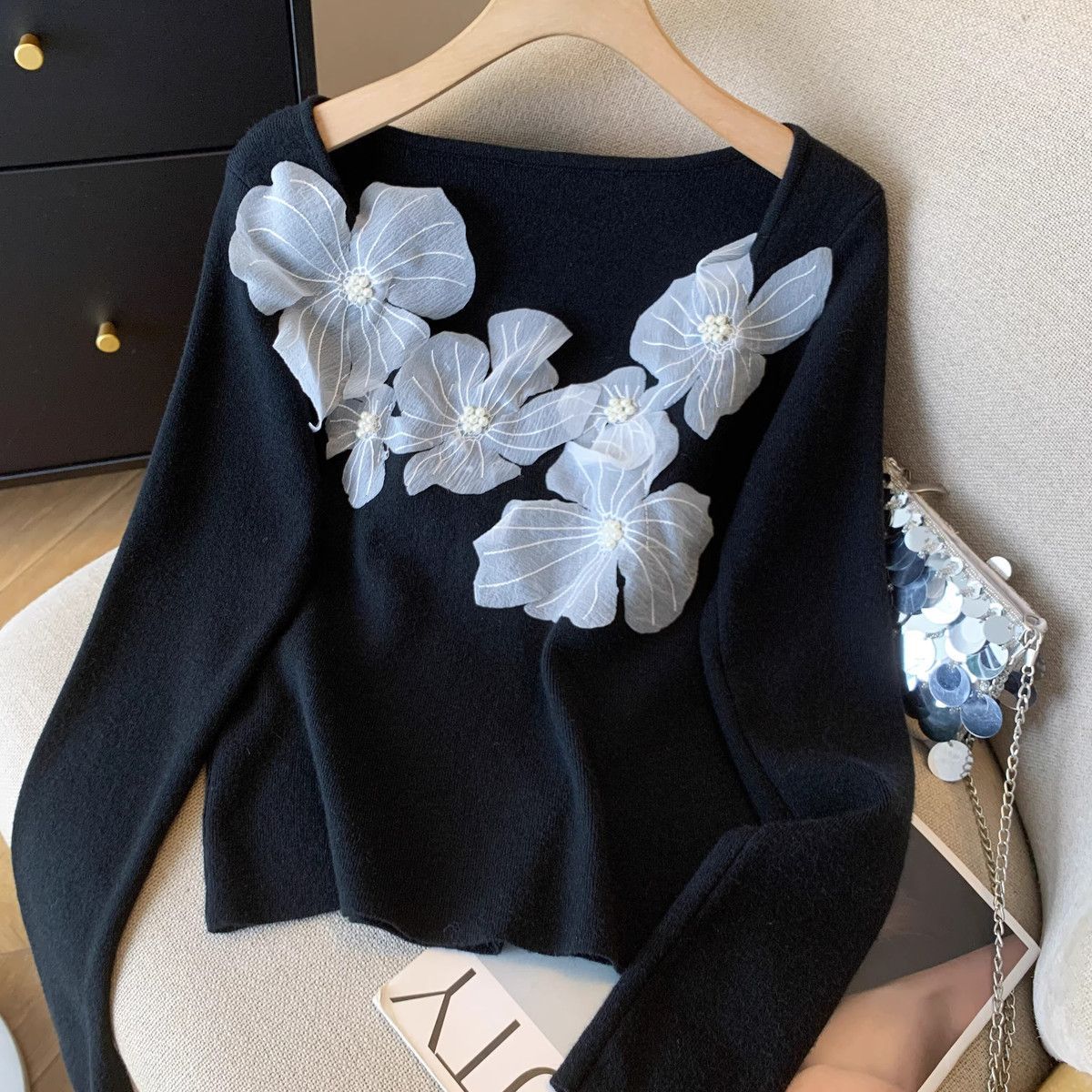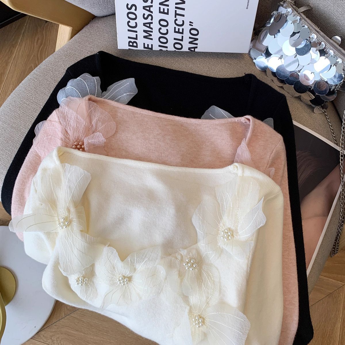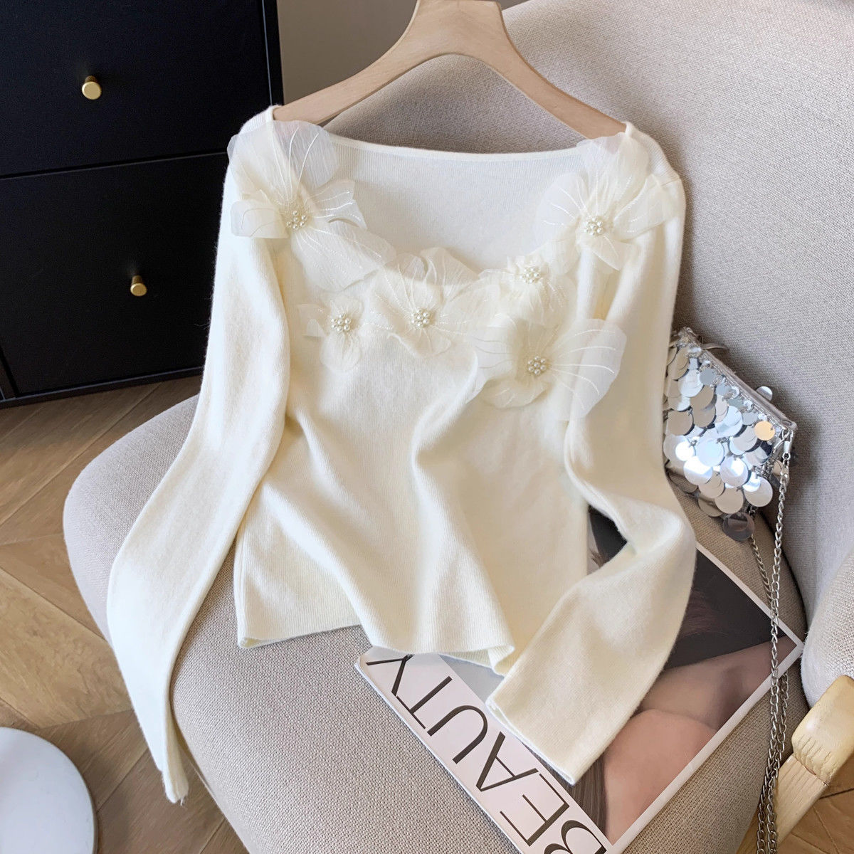 Fashion Elements: Solid color, bead embellishments, 3D details