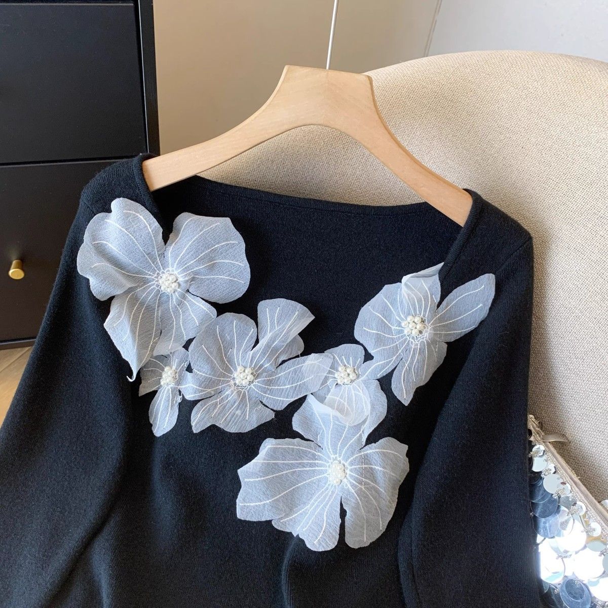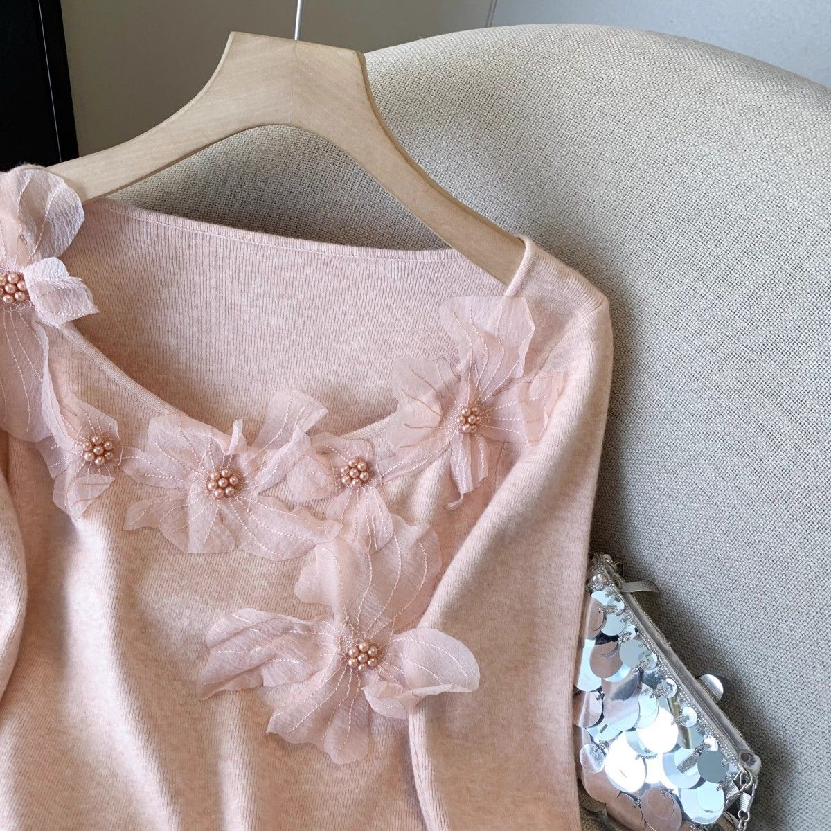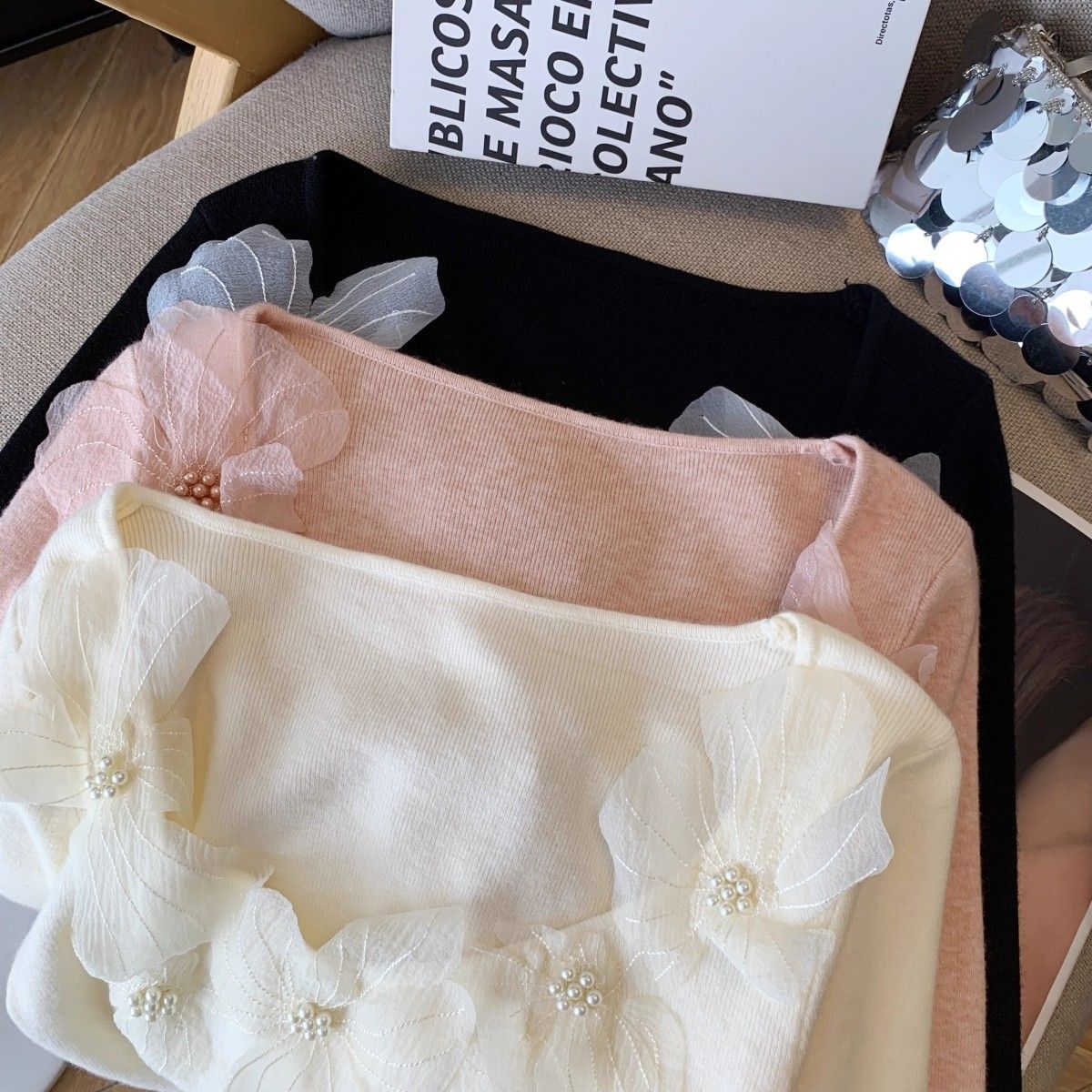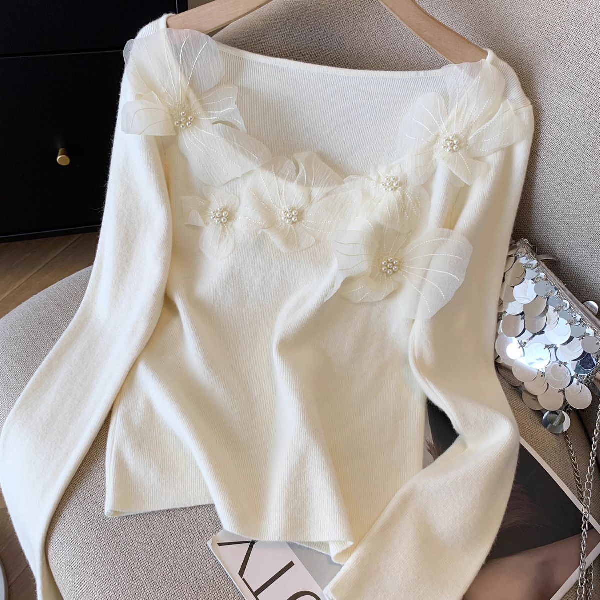 Fashion Elements: Solid color, bead embellishments, 3D details