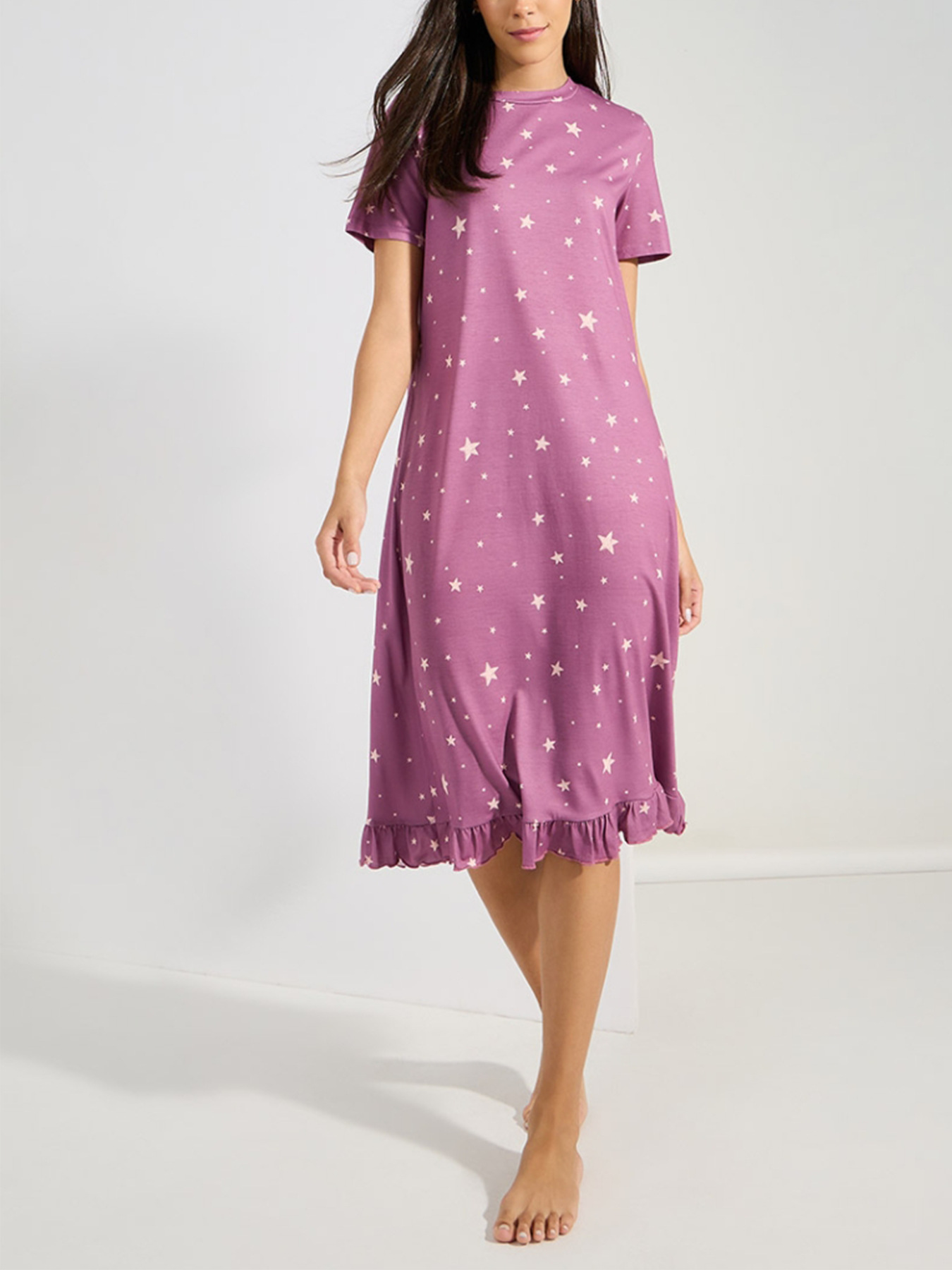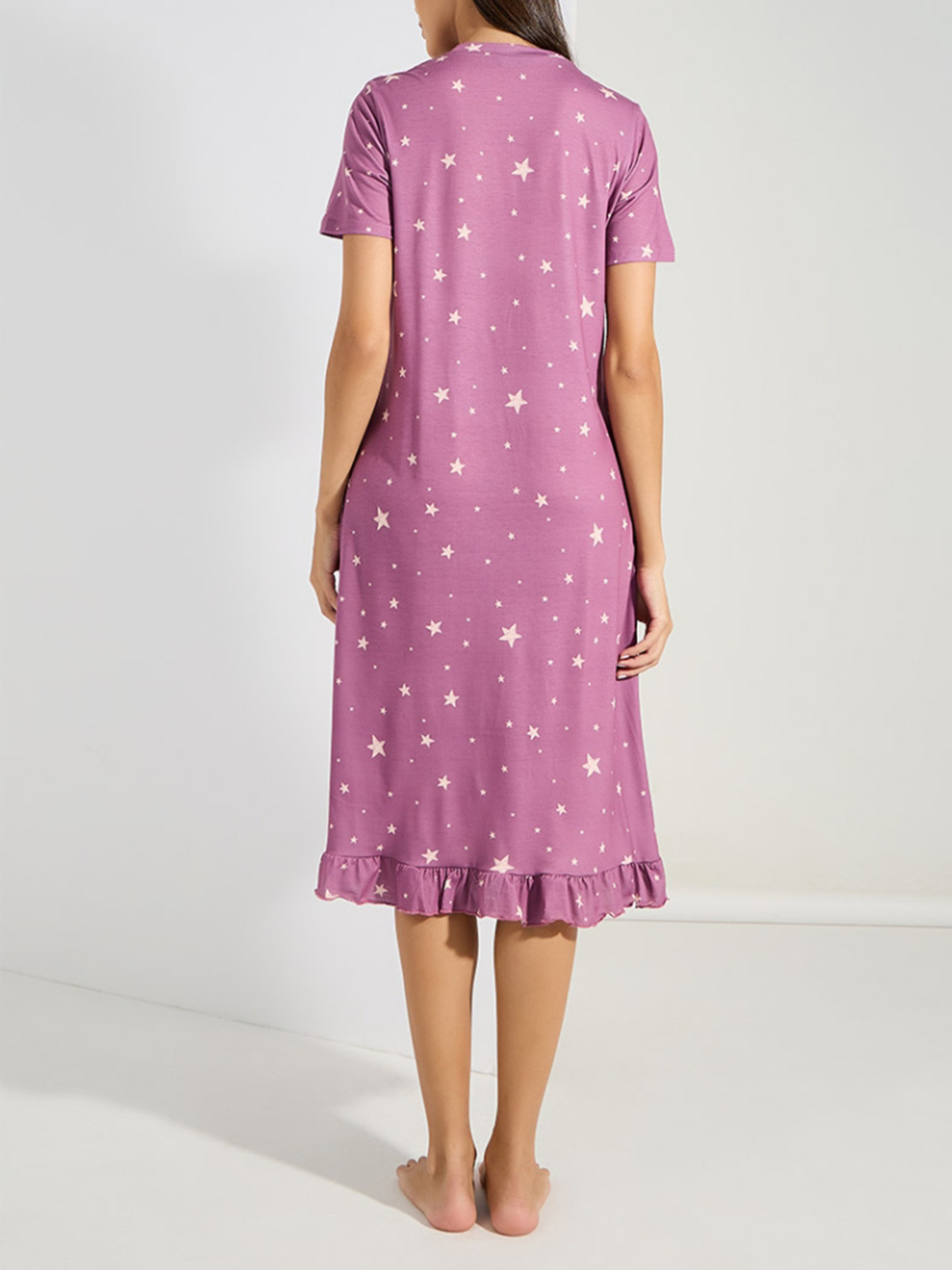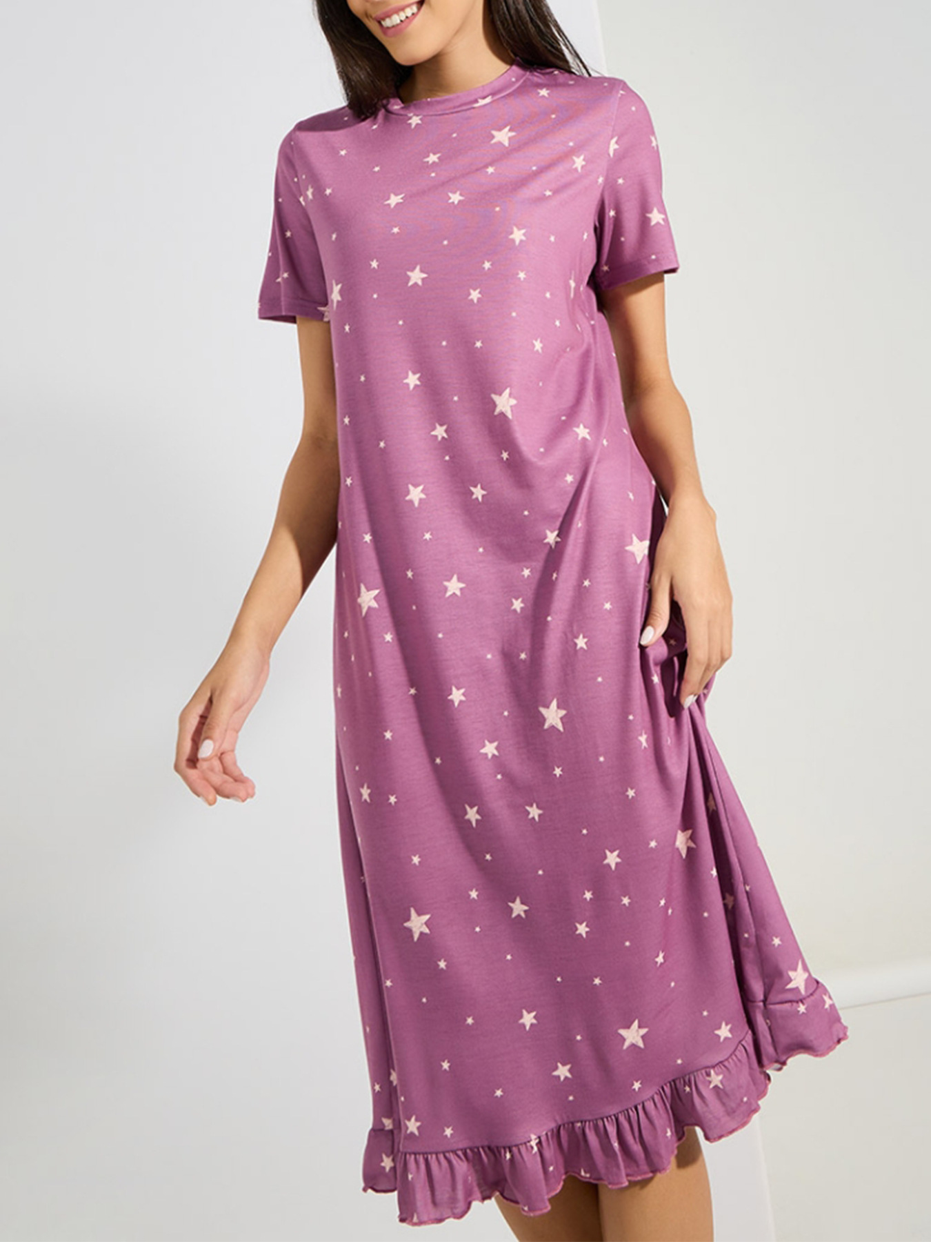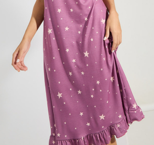 Bestselling WISH Export Dress Crew NeckShort SleevesStarry Sky Print And Ruffled Hem