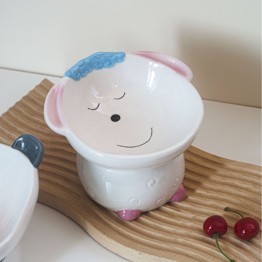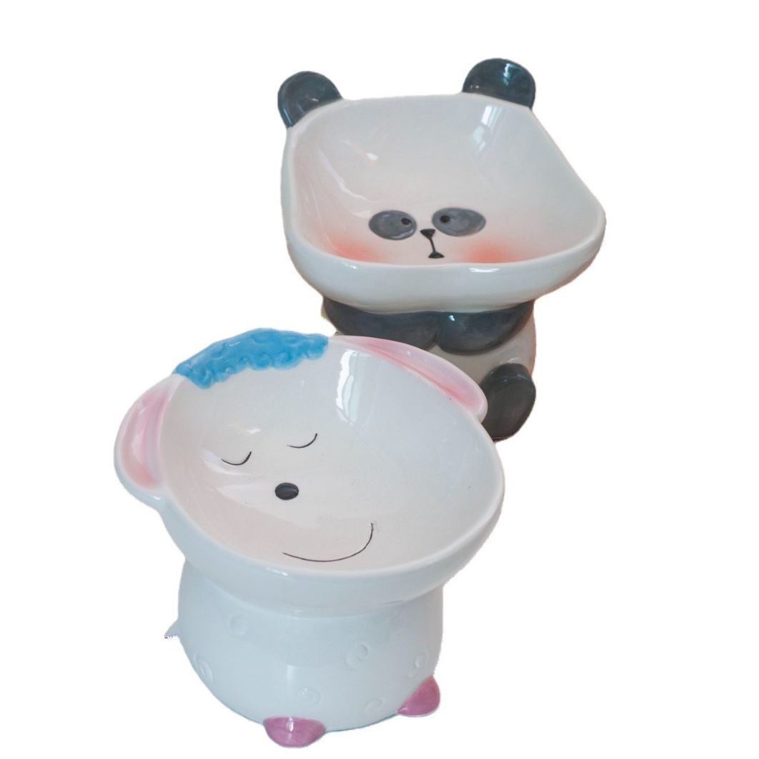 Cute Cartoon High Leg Ceramic Pet Bowl