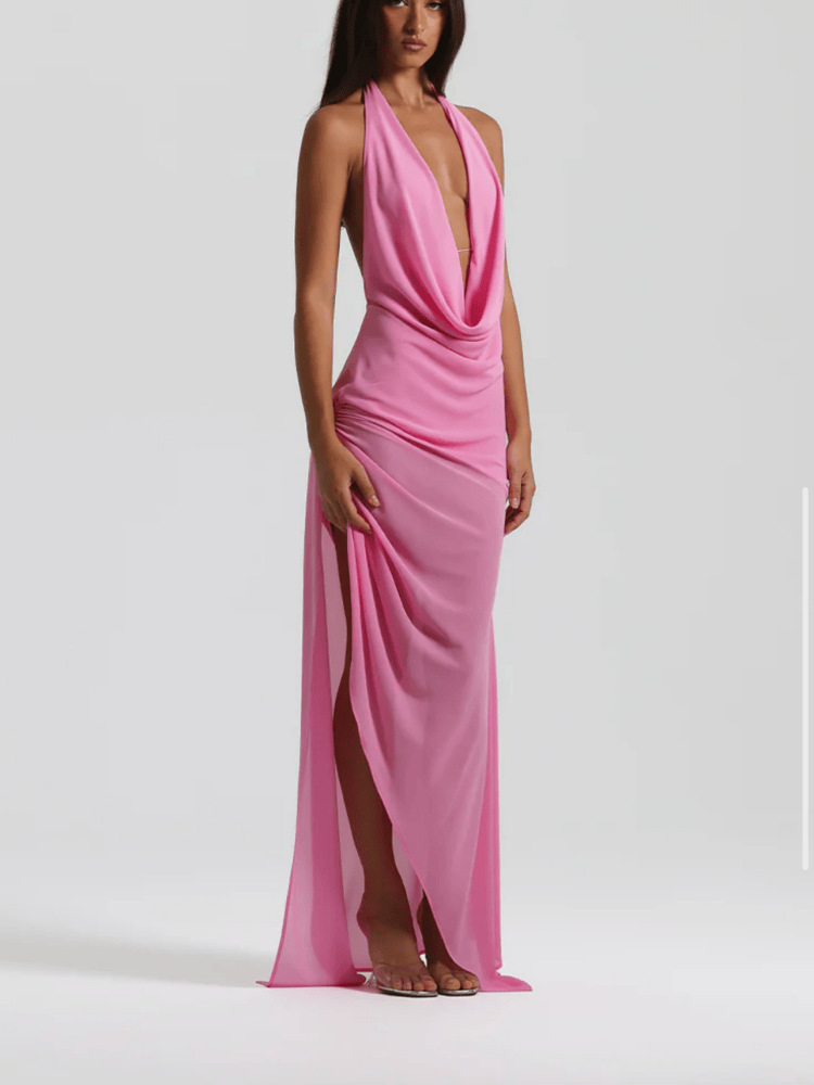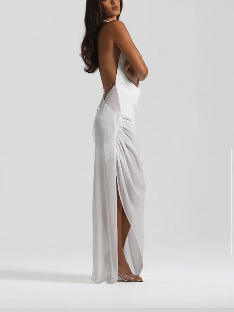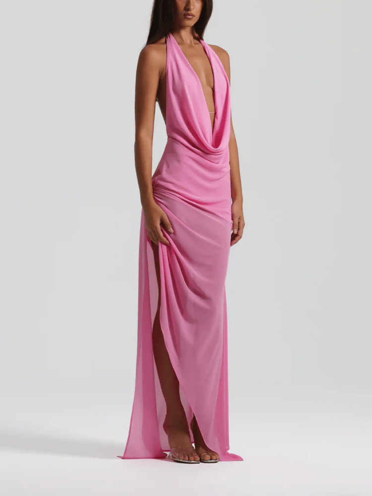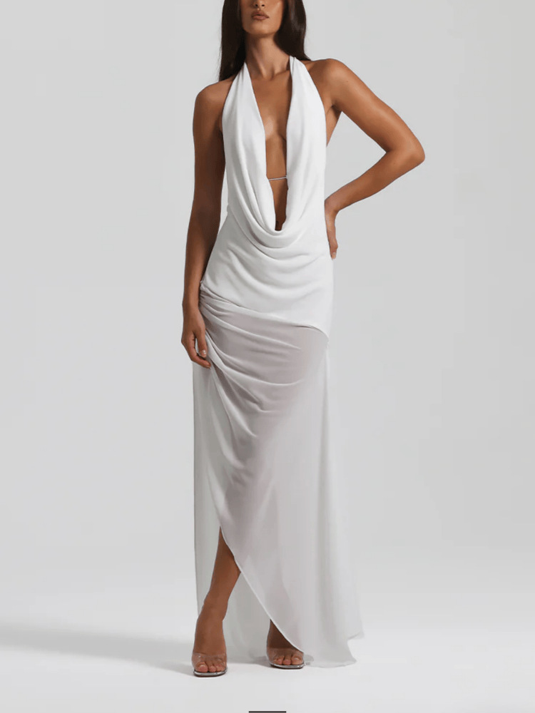 Deep V-neck Backless Sexy Asymmetrical Ruffled Dress