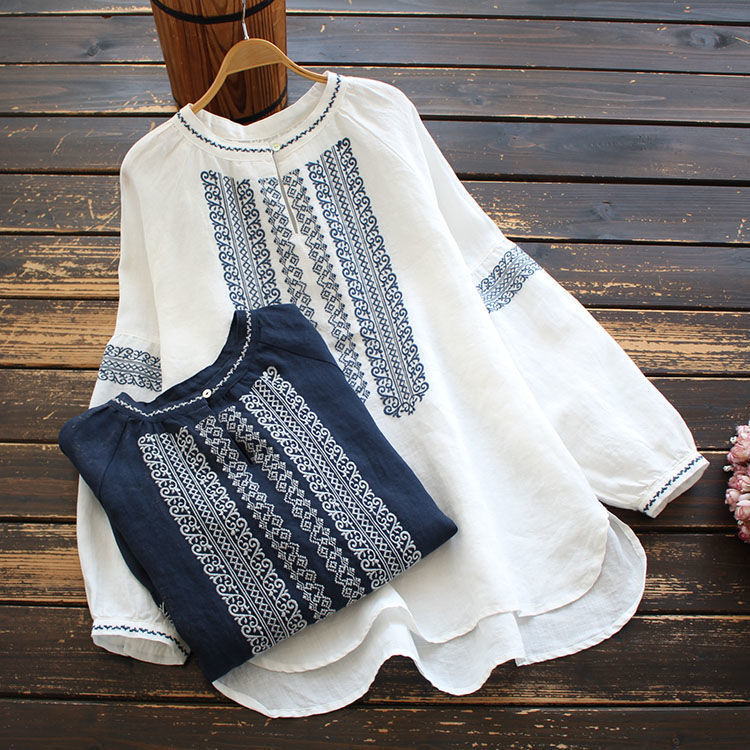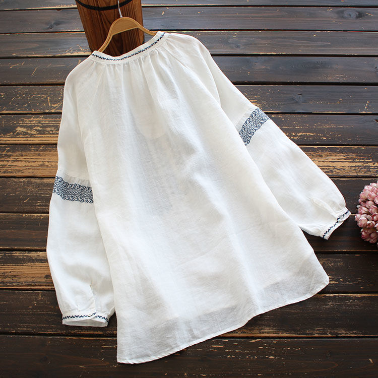 Ethnic Style Wheat Embroidery Long Sleeve Loose Top