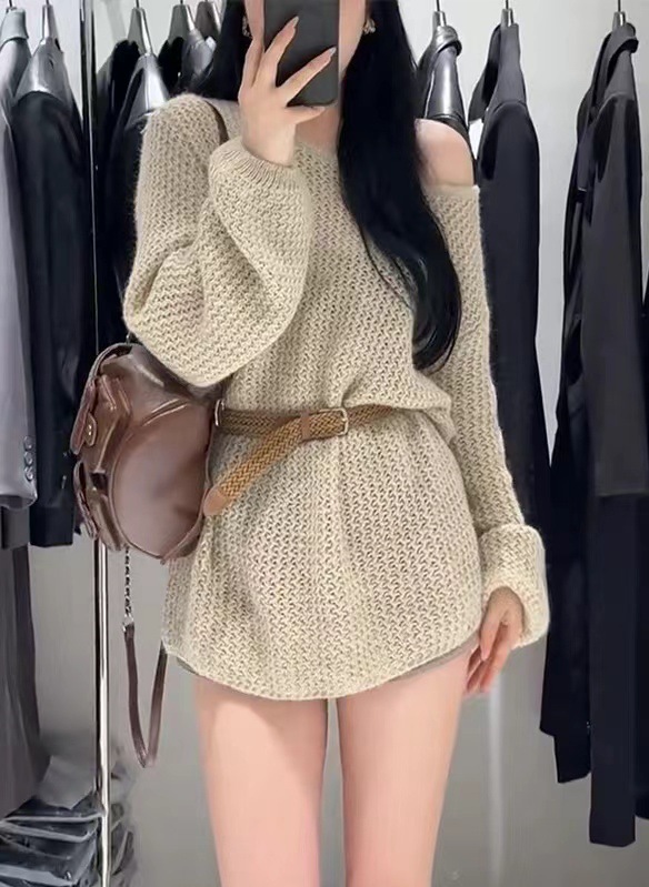 French-style Hollow-out Long-sleeve Knit Sweater For Women Early Autumn New Arrival