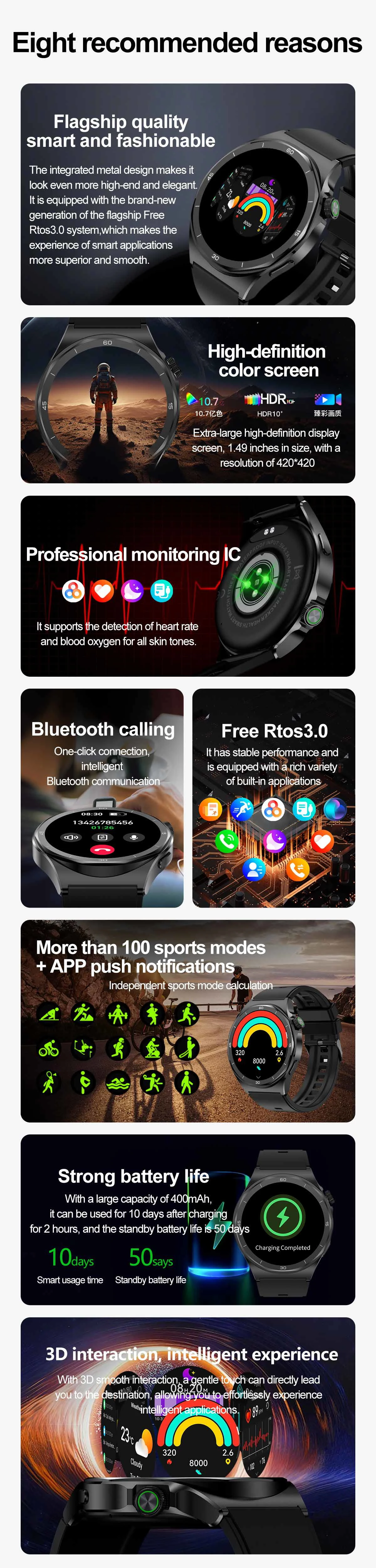 New Bluetooth Calling Men'S Smart Watch 360 * 360 HD Large Screen Heart Rate IP68 Waterproof Outdoor Sports Women'S Smart Watch