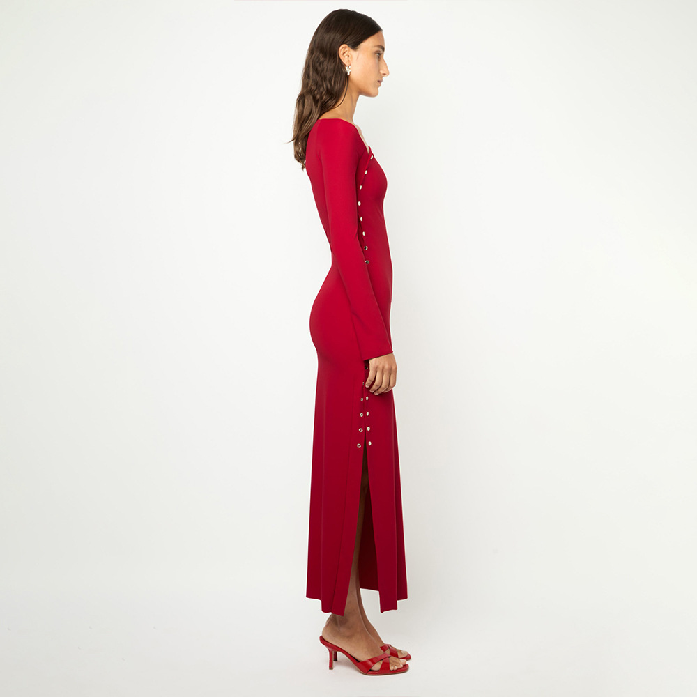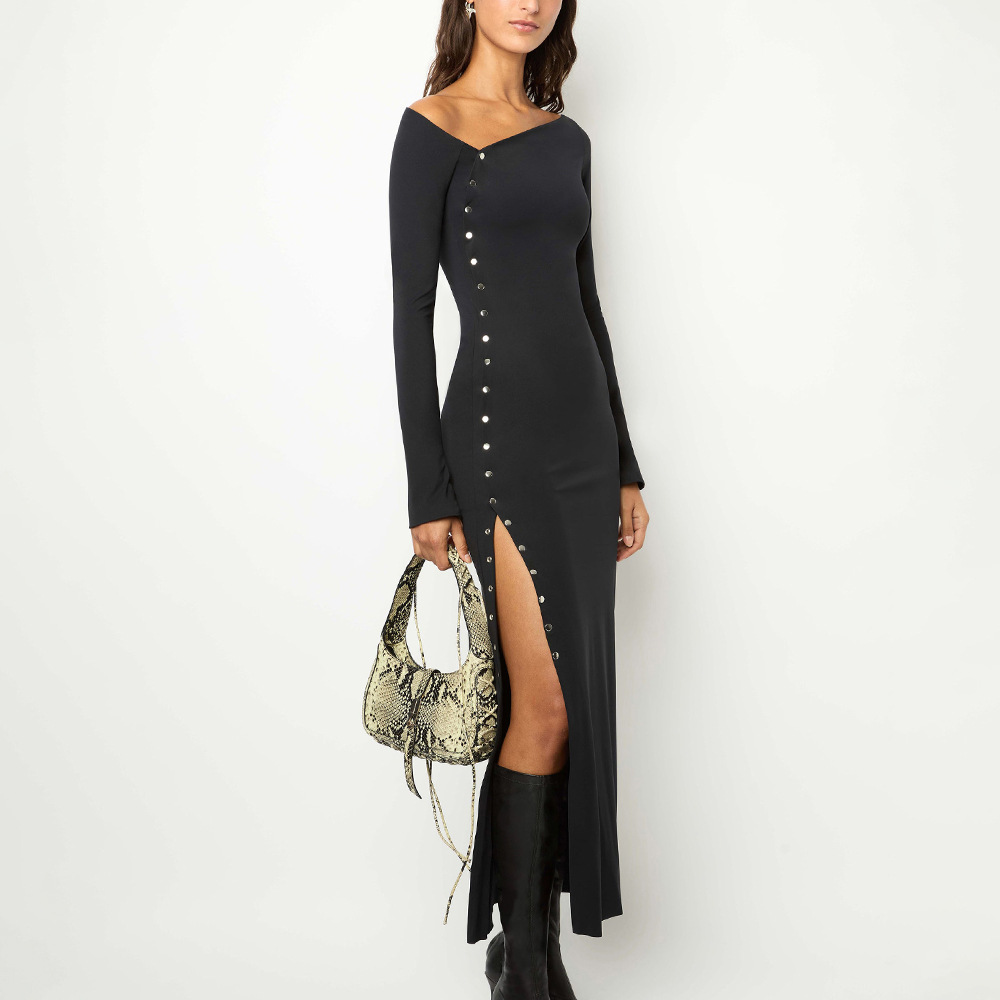 Sexy Chic High-slit Long-sleeve Fashion-fit Maxi Dress