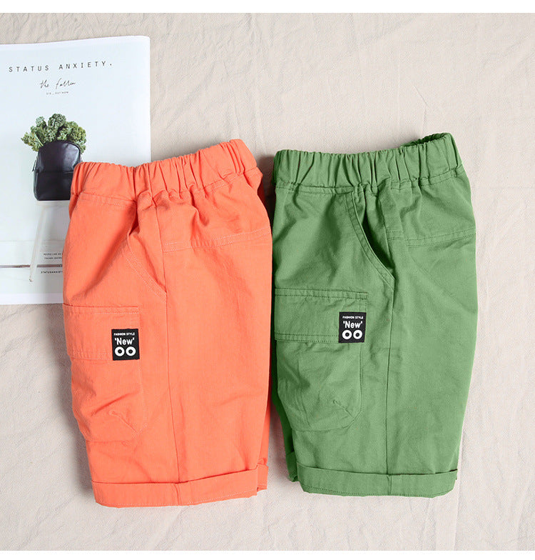 Solid Color Boy's Thin Loose Cropped Cargo Trousers