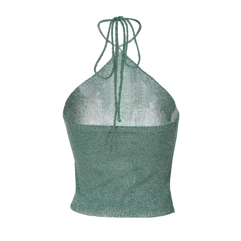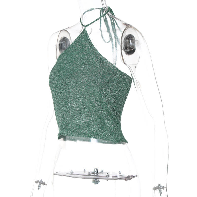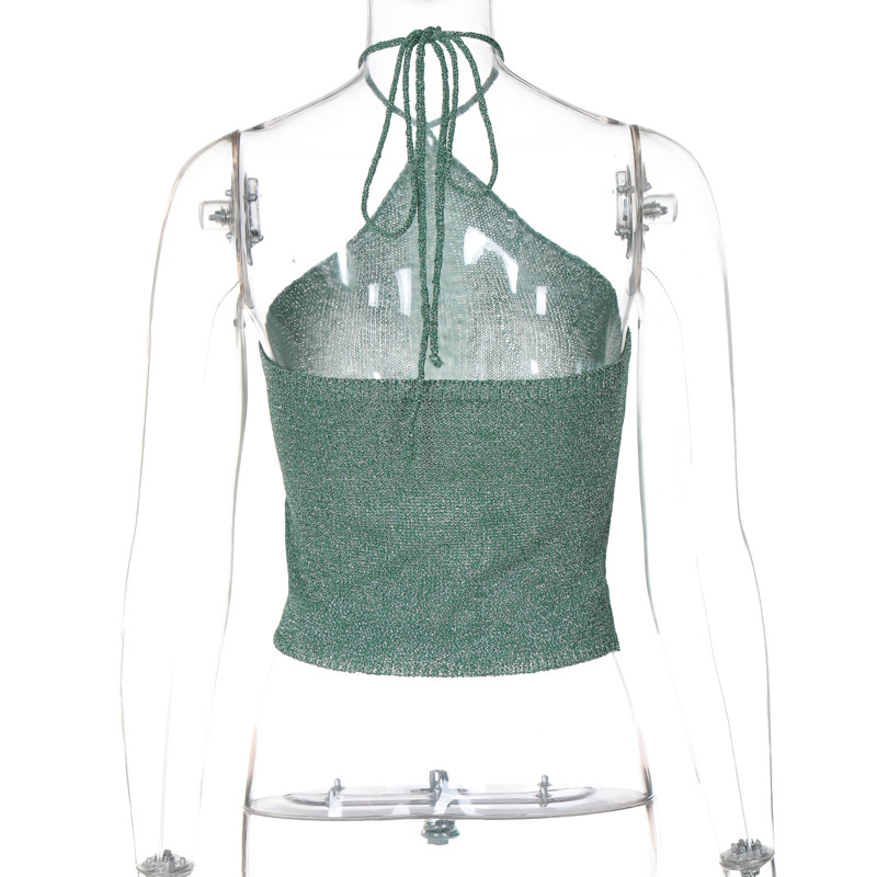 Solid-color, Versatile, Form-fitting Knit Camisole With A Wrap-style Bust And Halter Neck