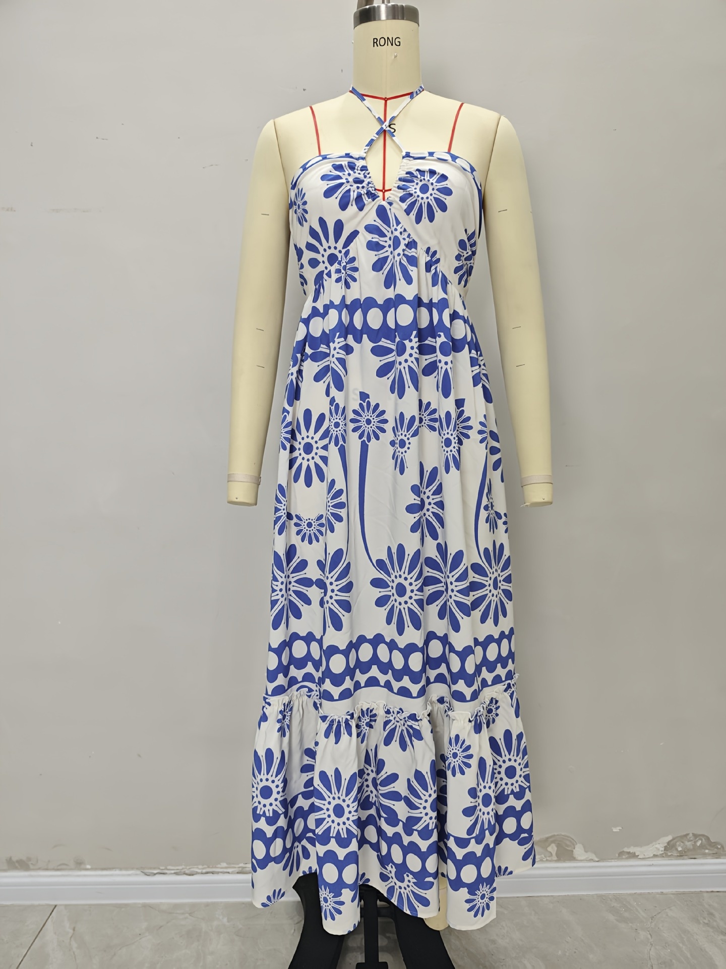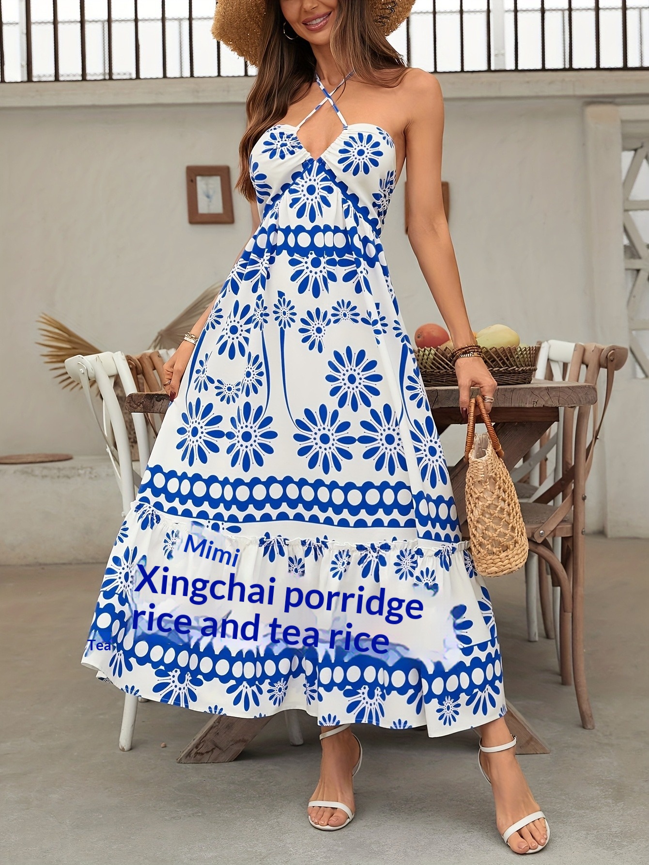 Womens Casual Off-shoulder Halterneck Cross-over Dress