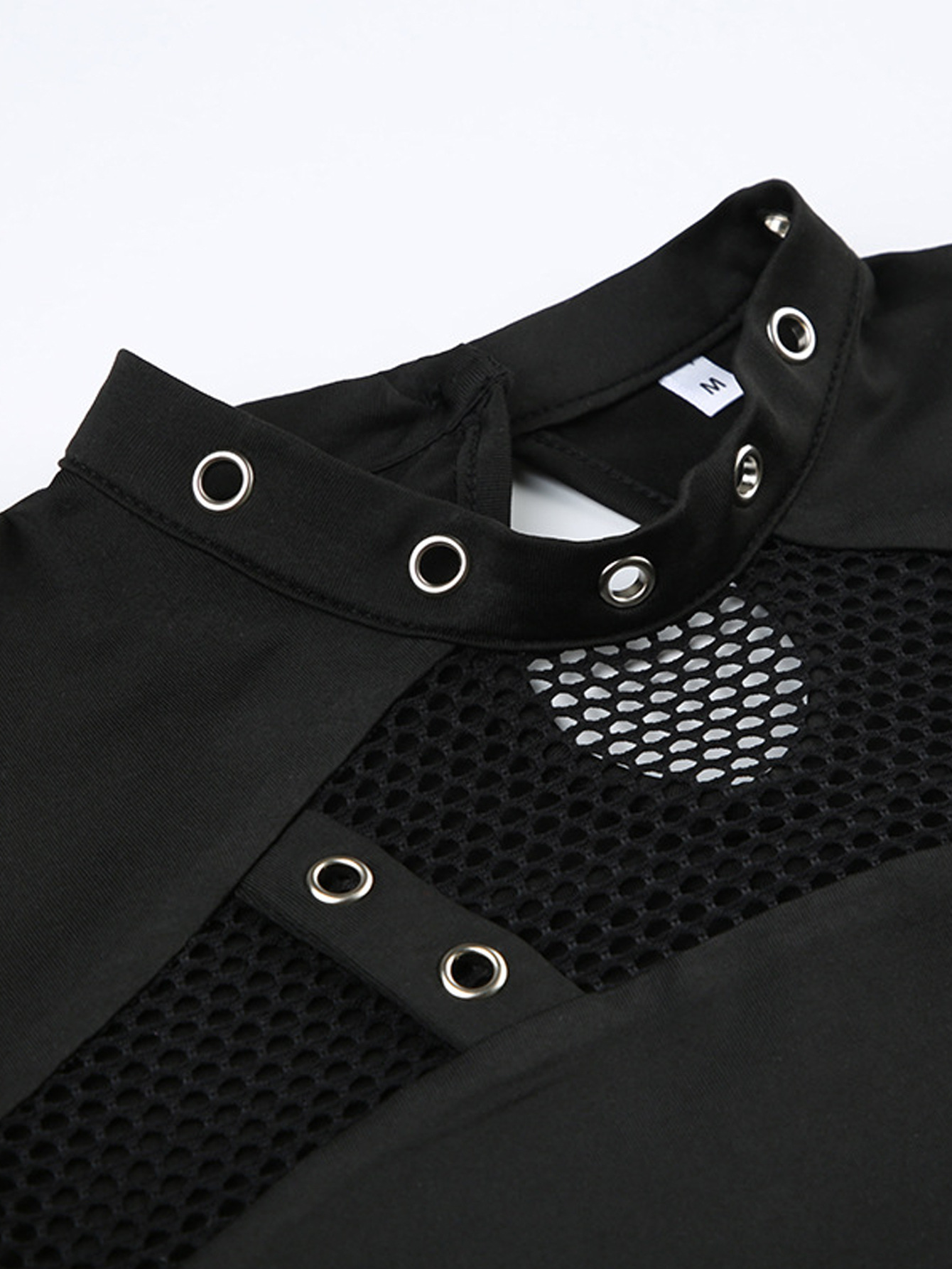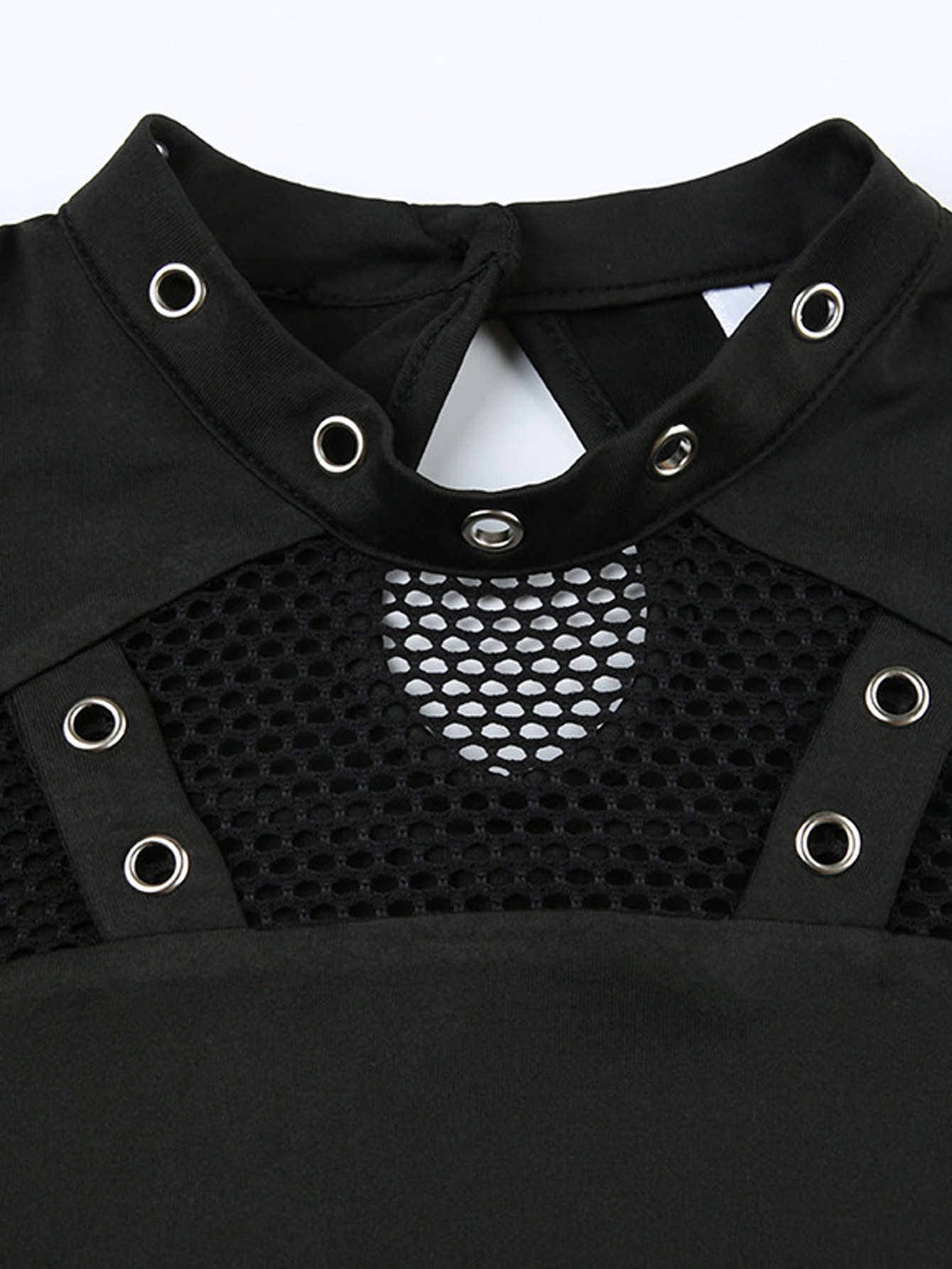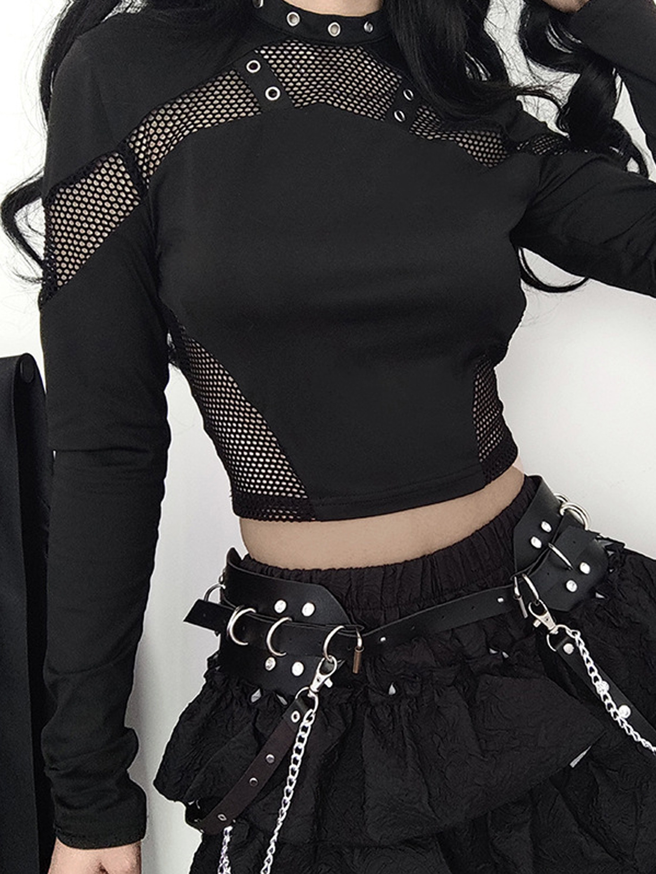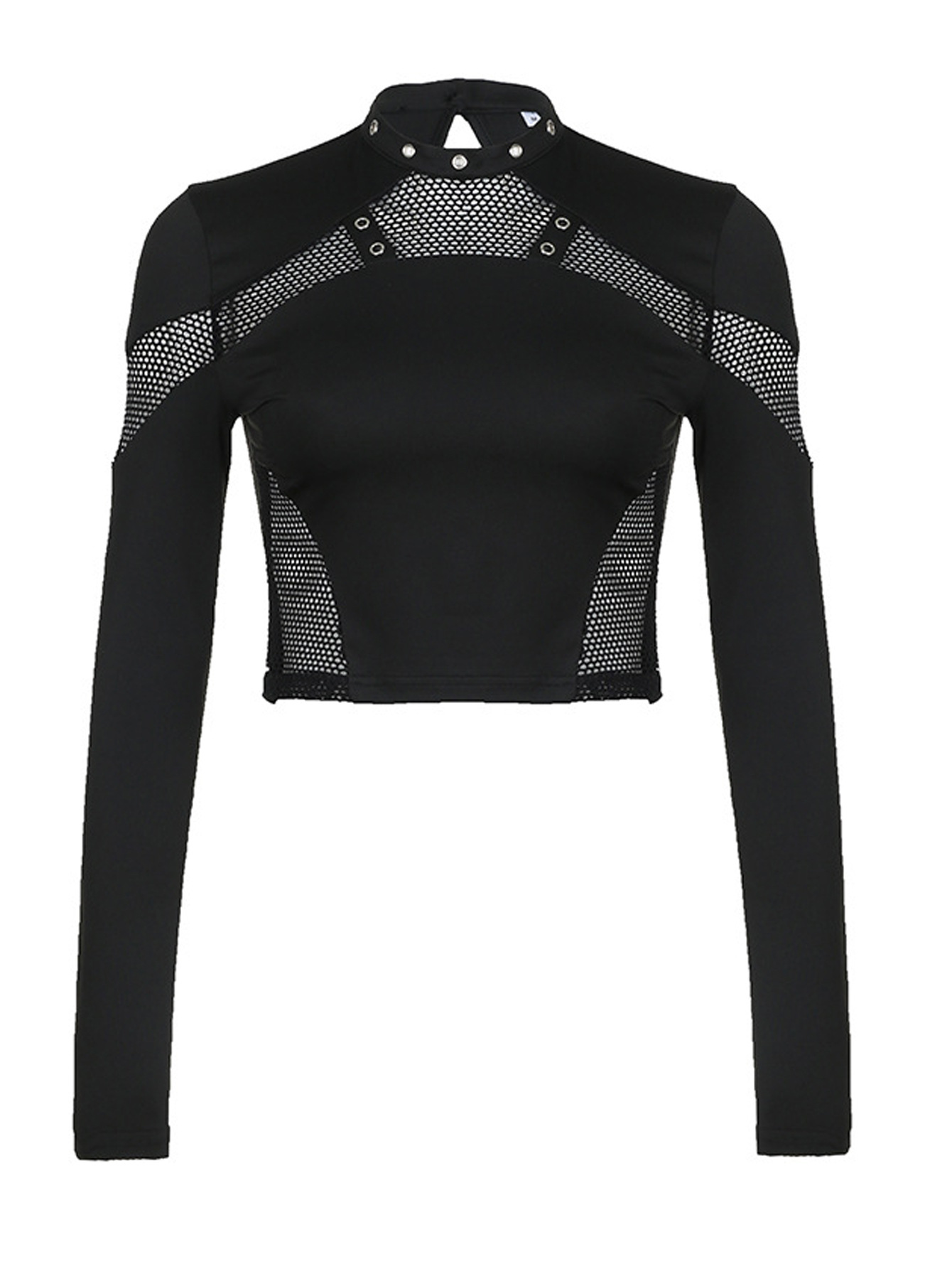 Autumn And Spring Dark-Style Punk Fashion Slim-Fit Hollowed-Out Long-Sleeve Top