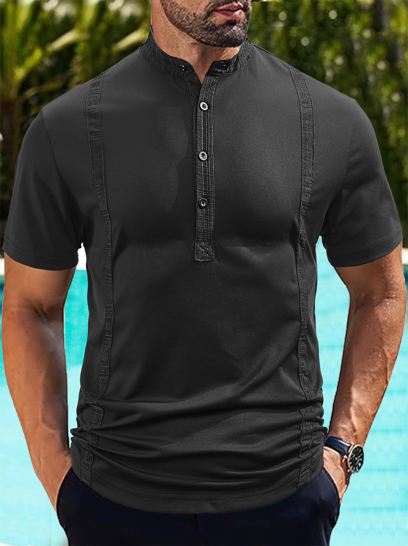 Casual Pearl Cotton Twill Short-sleeved Polo Shirt