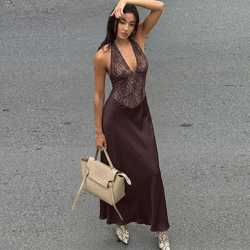 Womens Fashion Hollowed-Out Backless Lace Dress