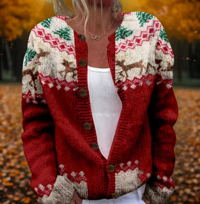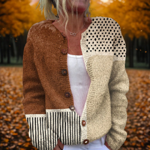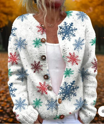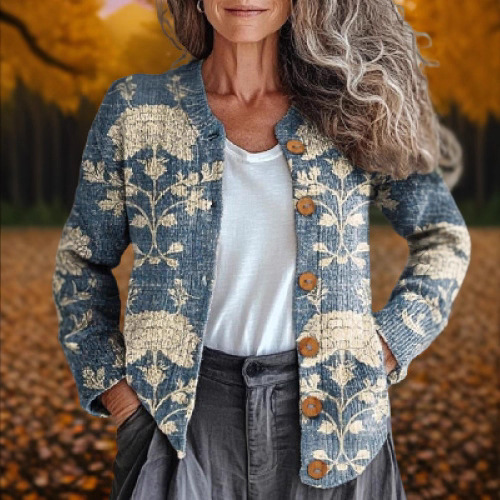 Women's Retro 3D Digital Print Cardigan Sweater Coat