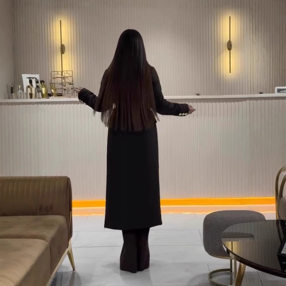 Fashion Solid Color Polo Collar Lace Up Waist Long Cotton Jacket Women