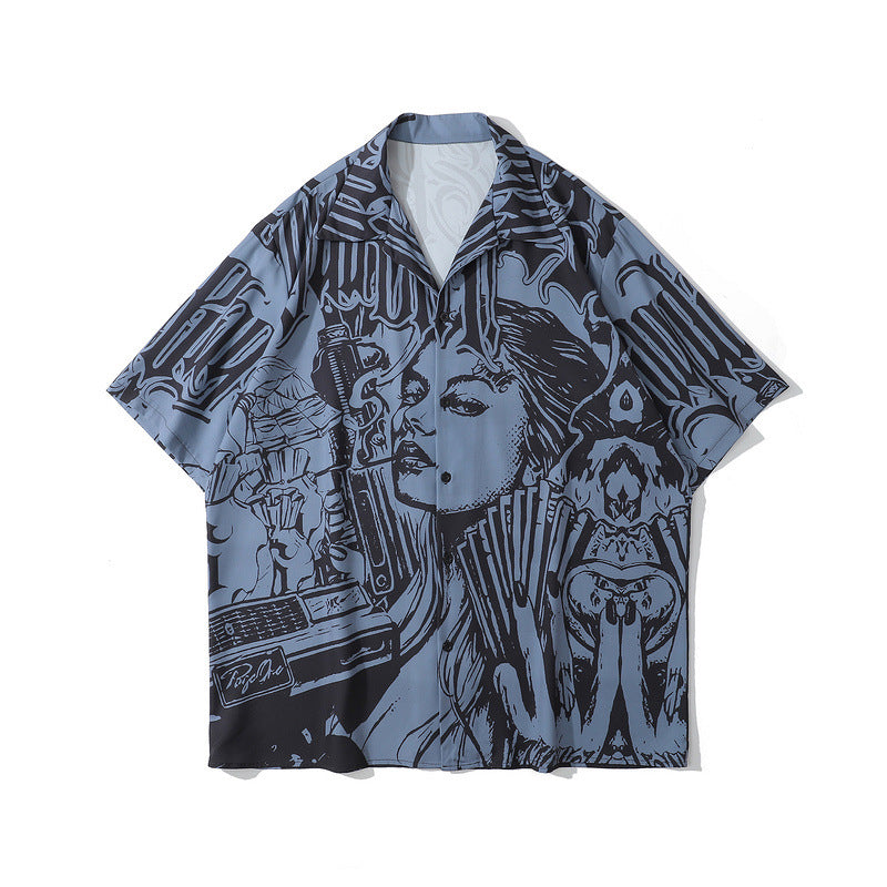 Retro Lip Print Rose Short-sleeved Shirt Men And Women Tide Brand Street Loose Oversize Flower Shirt