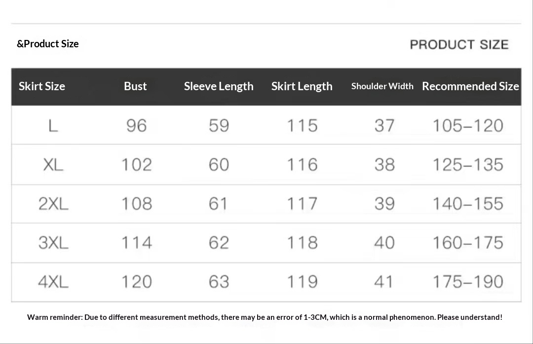 Sizes: S, M, L, XL, 2XL, 3XL, 4XL, 5XL