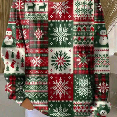 Womens Relaxed Casual Long-sleeve Crew-neck Sweatshirt