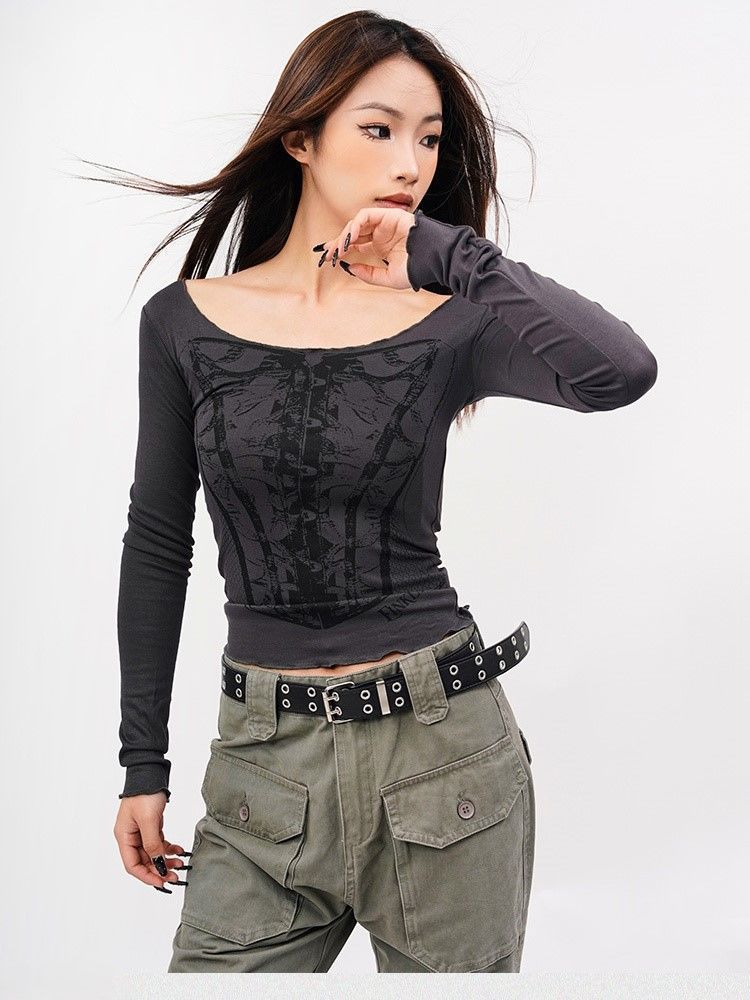 Women's Retro Square-Shoulder Slimming Long-Sleeve